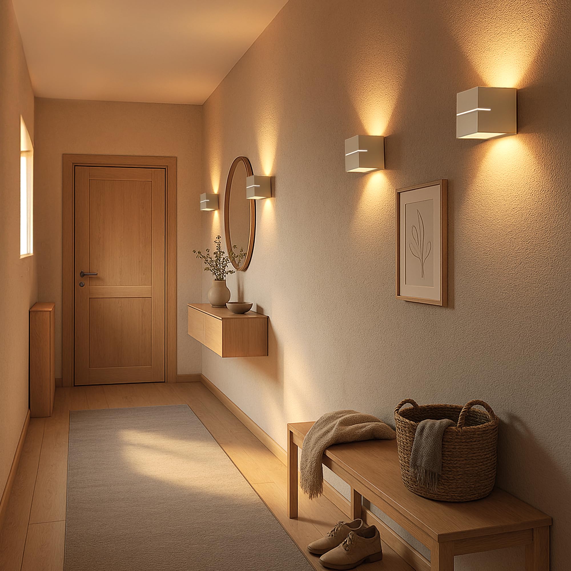 In die Wandlampe Treppenhaus innen passt ein G9 Leuchtmittel, das flexibel gewechselt werden kann. Dies ermöglicht es Ihnen, die Helligkeit und Farbtemperatur selbst zu wählen und je nach Wunsch zu tauschen. Das Up & Down Licht des Wandspots innen sorgt für eine gleichmässige und angenehme LED Wandbeleuchtung. Der Lichtschlitz in der Mitte der Treppenleuchte, durch den zusätzlich Licht leuchtet, ist ein besonderer Hingucker.Anwendungsorte und Beispiele