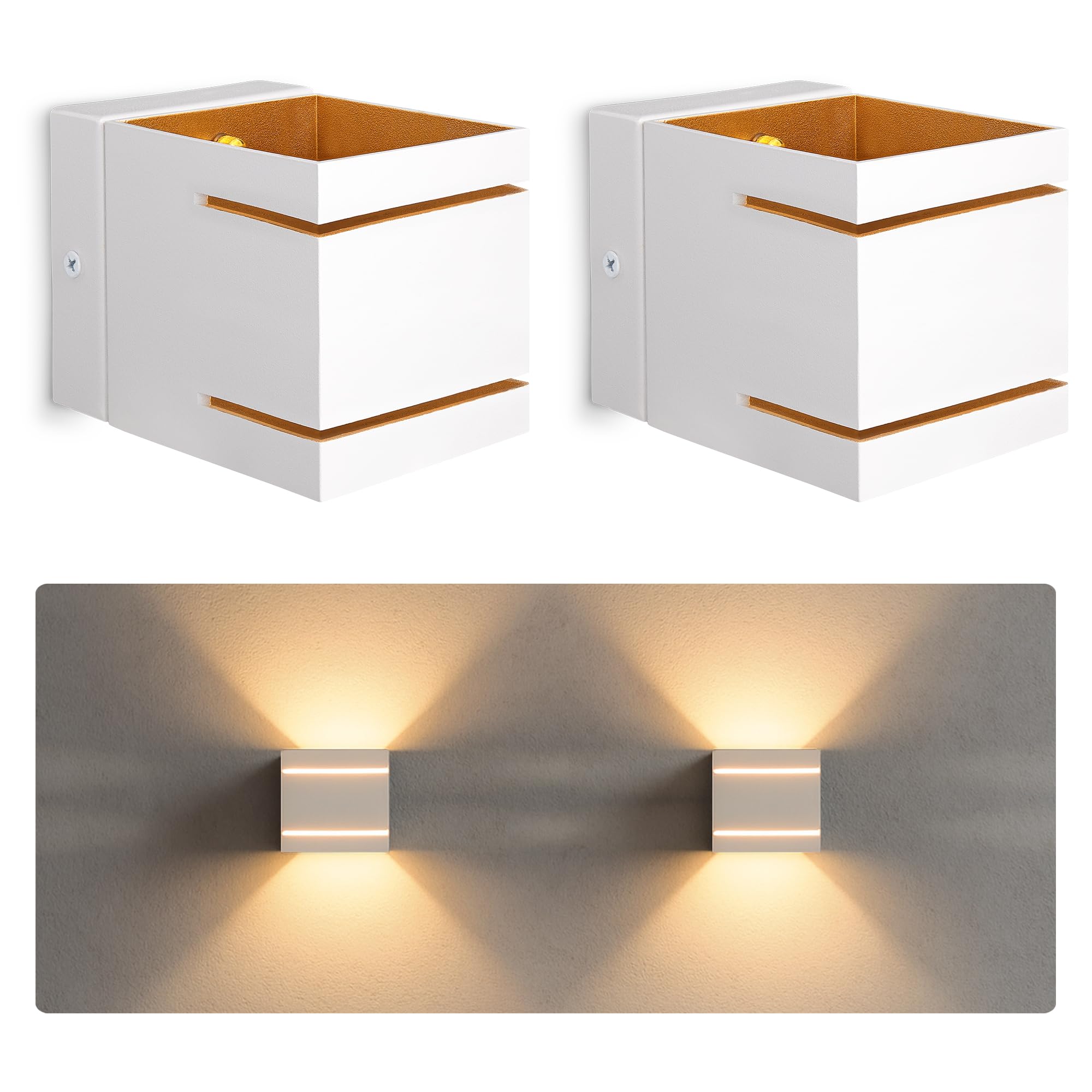 SSC-LUXon 2er Set KOURA Wandlampe Weiss Gold mit G9 Fassung – moderne Wandstrahler für Innen Wandlicht mit Schlitzen für Flur & Wohnzimmer