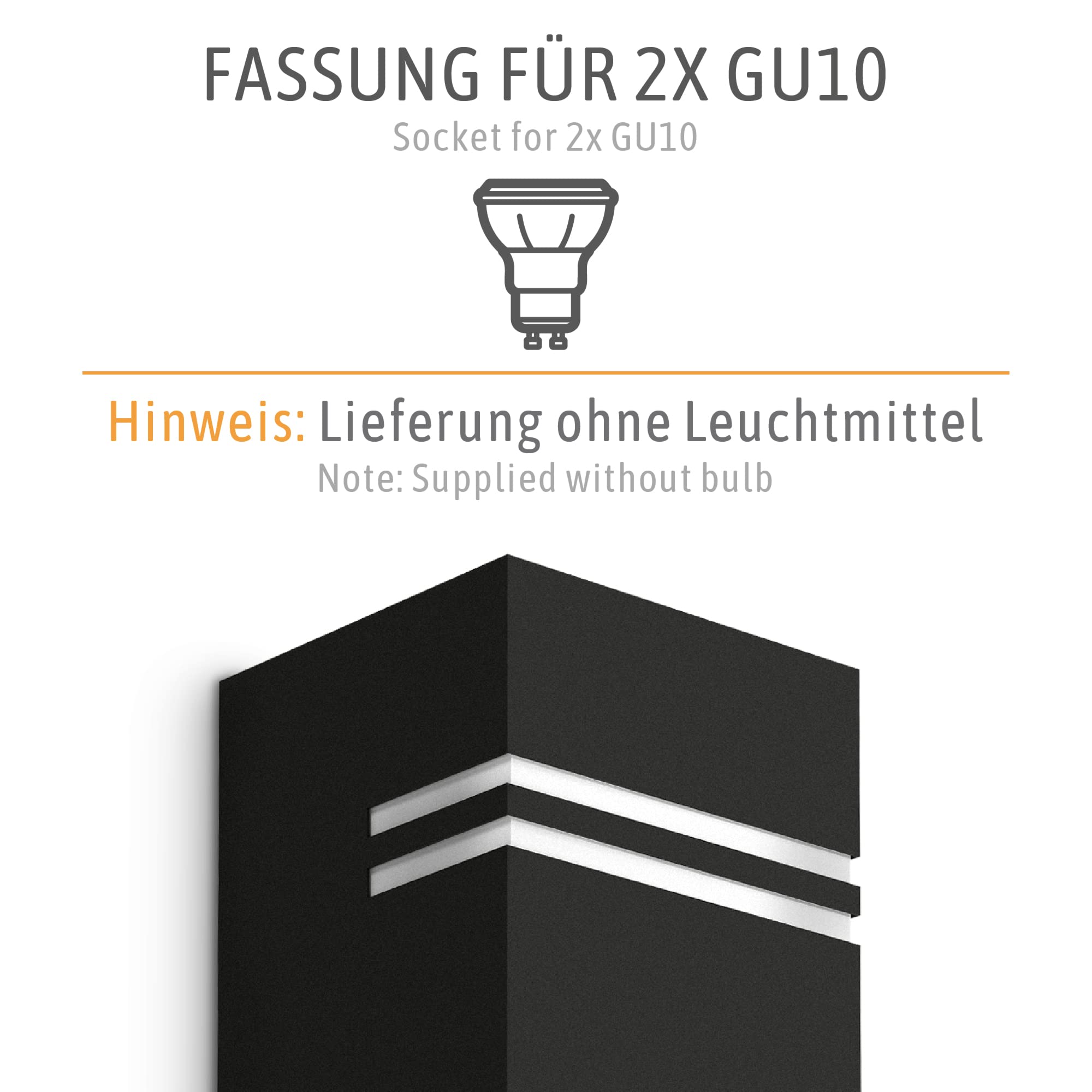 SSC-LUXon Aussenwandleuchte JOVO-L für aussen in matt schwarz 230V - up & down Wandlampe mit Wasserschutz IP44 für 2x GU10 Leuchtmittel