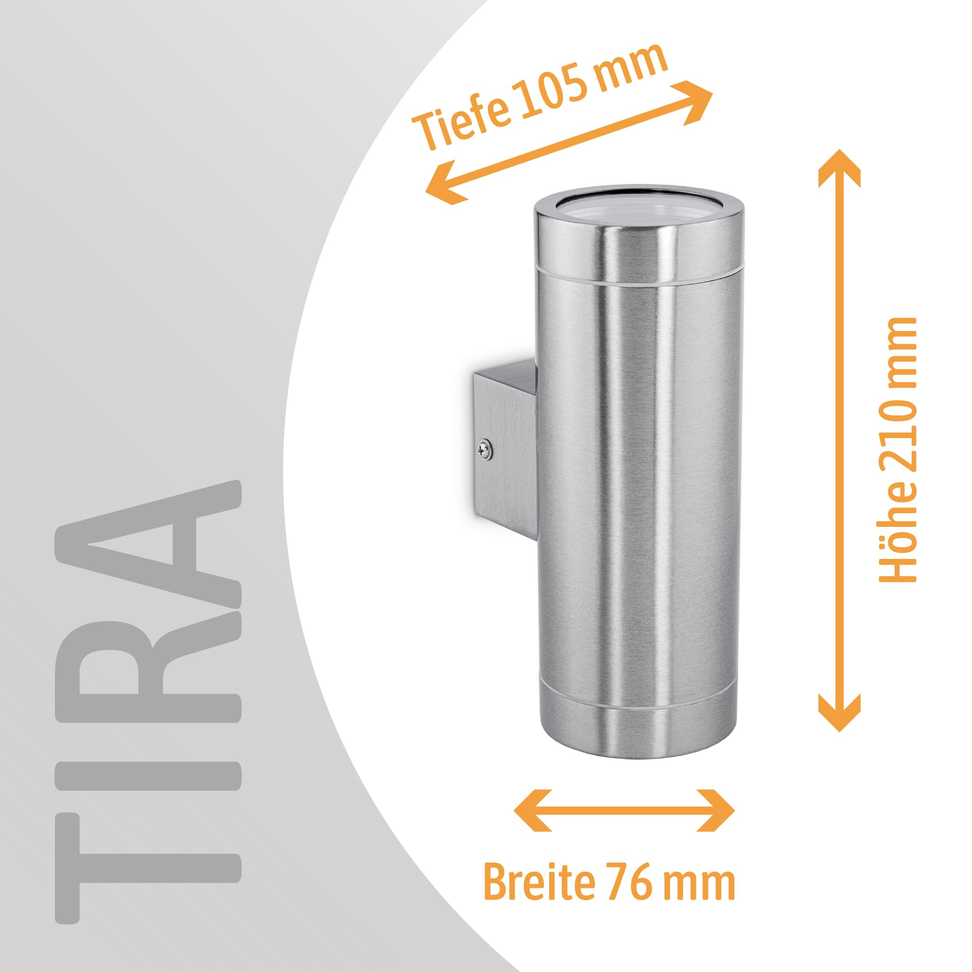 SSC-LUXon LED Wandlampe TIRA Up & Down Aussen 230V - Wandleuchte IP44 - Oberfläche Edelstahl - inkl. 2 LED Leuchtmittel 3W GU10 warmweiss 2700K