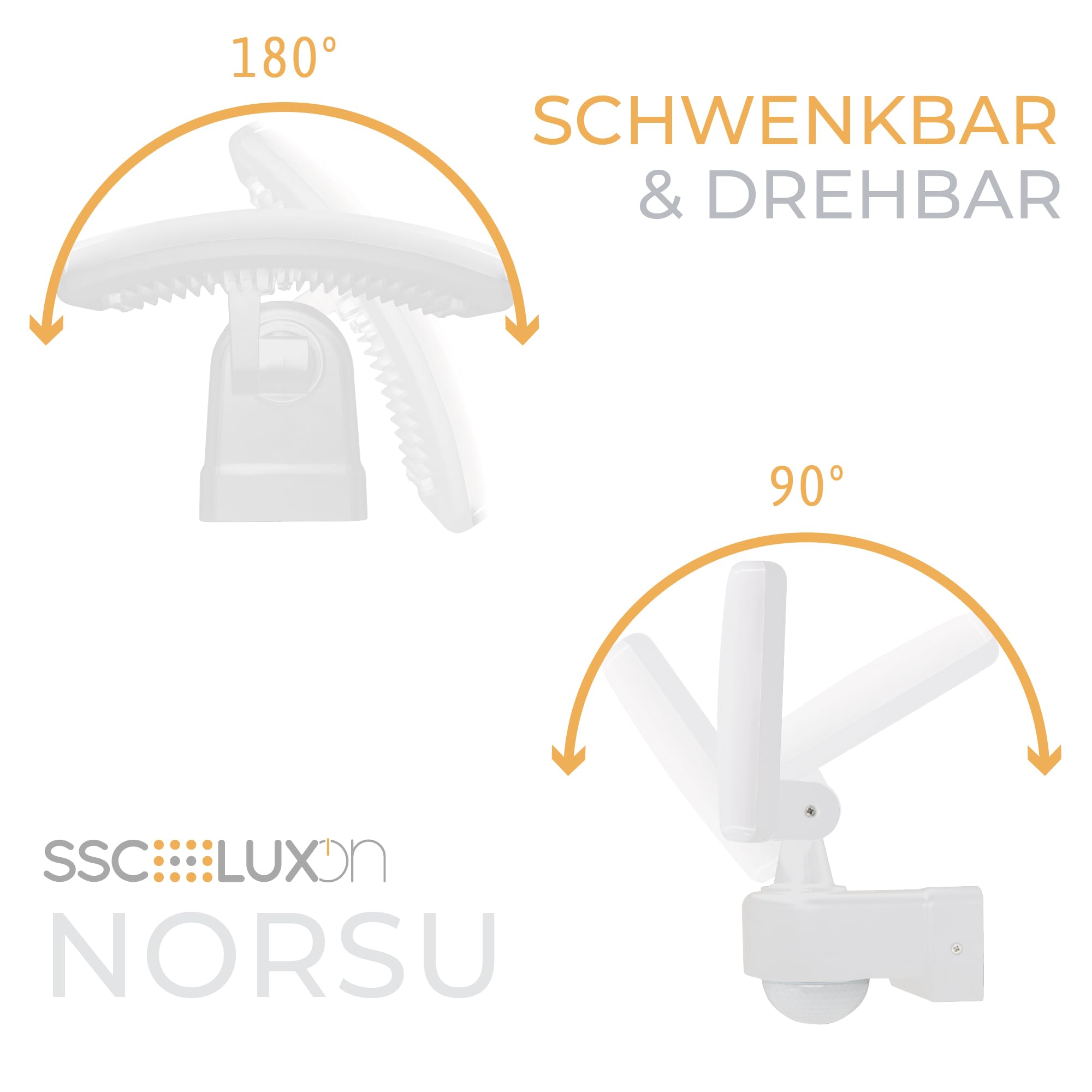 SSC-LUXon NORSU Aussenlampe weiss mit Bewegungsmelder Wandstrahler Aussen - LED Fluter mit Dämmerungsschalter IP65 wetterfest 4000K 230V