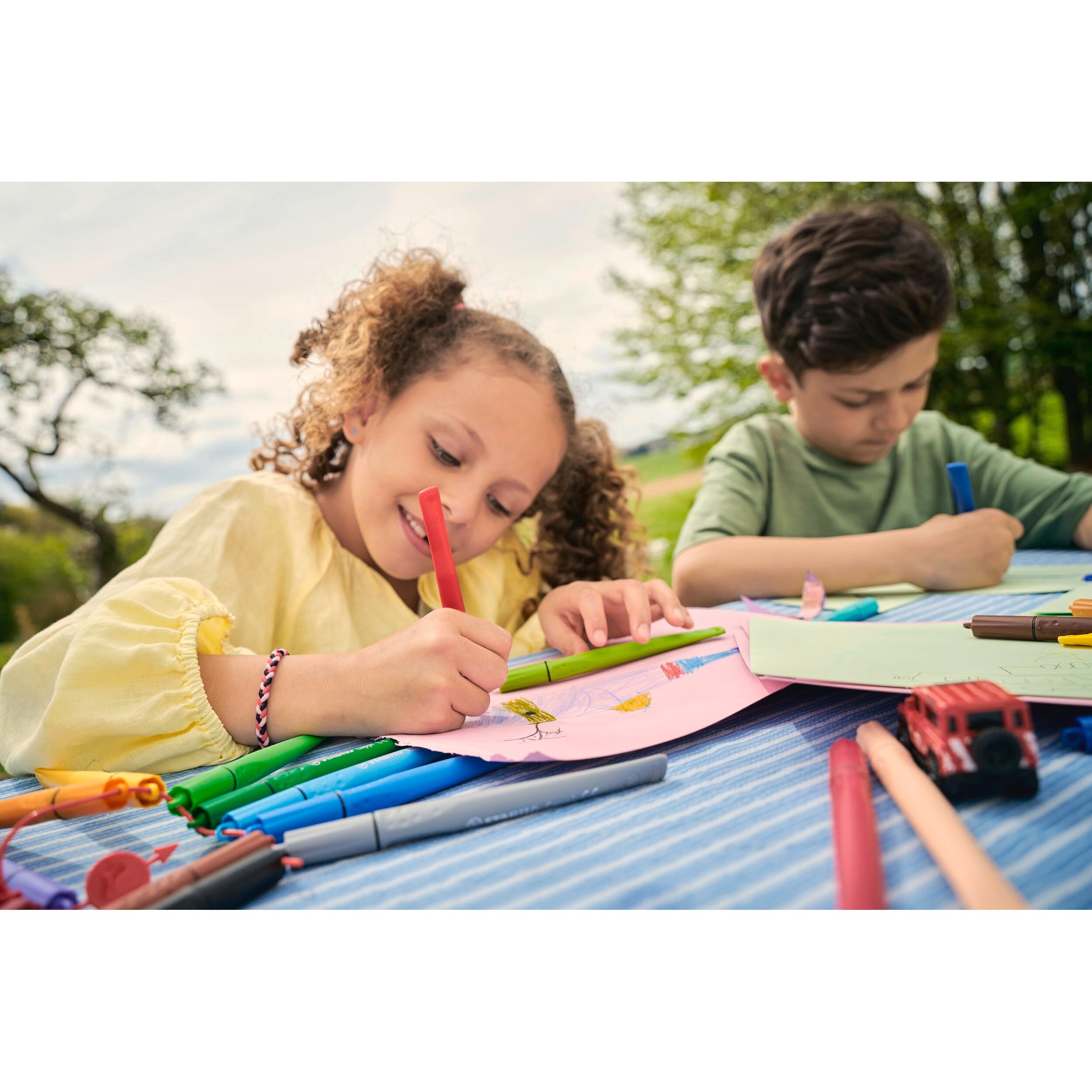 Mit dem STABILO Cappi gehören verschwundene Filzstift-Kappen der Vergangenheit an. Mit einem cleveren Kappenring können die Stiftkappen einzeln aufgefädelt werden und gehen so nicht mehr verloren. Durch seine ergonomische Griffzone und die spezielle Tubenform liegt er perfekt in der Hand und kann gleichzeitig nicht vom Tisch rollen. Mit seinem 24-Stunden-Austrocknungsschutz ist er hervorragend geeignet für stundenlanges kreatives Arbeiten.