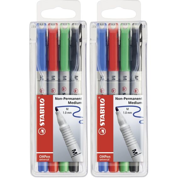 STABILO - Folienstift - OHPen universal - wasserlöslich medium - 8er Pack - grün, rot, blau, schwarz, Größe: 4 stück (2er Pack), Farbe: 4er 4er Pack - grün, rot, Folienstift - STABILO OHPen universal - wasserlöslich medium - 4er Pacmedium