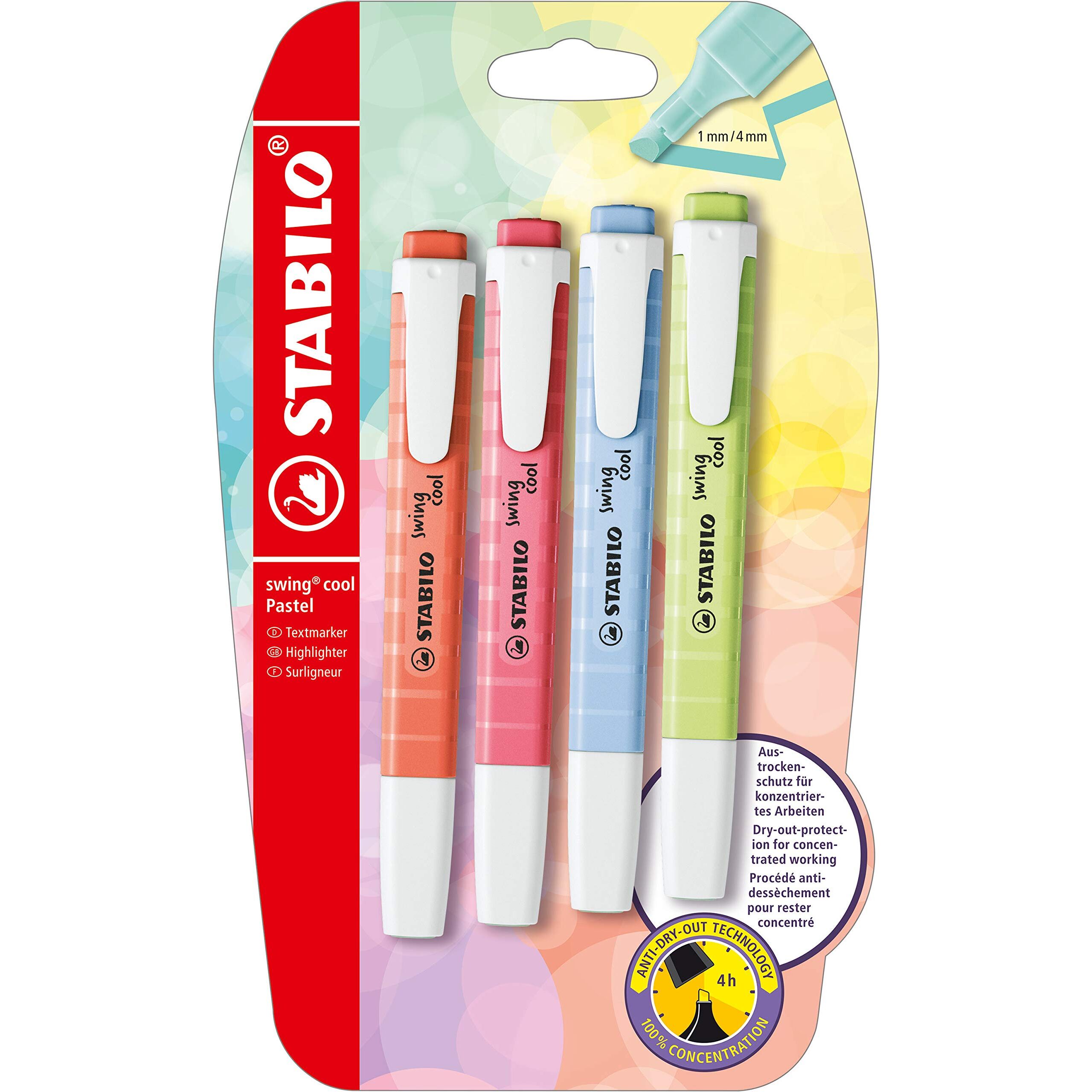 Trendige Zartheit zum Mitnehmen, das ist der STABILO swing cool in der Pastel Edition. Für alle, die auch unterwegs Highlights setzen wollen und dabei mit dezenten und sanften Farben spielen, sind die swing cool in Pastellfarben die perfekte Lösung. Die STABILO Anti-Dry-Out Technology sorgt dabei für 4 Stunden Austrocknungsschutz und ermöglicht ein konzentriertes Arbeiten. Mit dem praktischem Clip und seiner schmalen Form ist er der perfekte Begleiter für unterwegs.