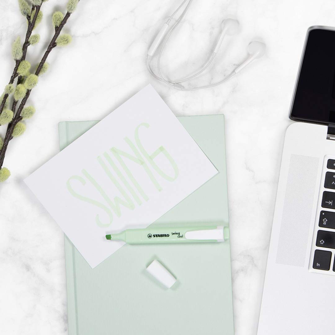 STABILO swing cool. Der Textmarker für trend- und modebewusste Schüler und Studenten und alle, die viel unterwegs sind. Die STABILO Anti-Dry-Out Technology sorgt für 4 Stunden Austrocknungsschutz und ermöglicht konzentriertes Arbeiten. Mit dem praktischem Clip und seiner schmalen Schaftform ist er der perfekte Begleiter für unterwegs.