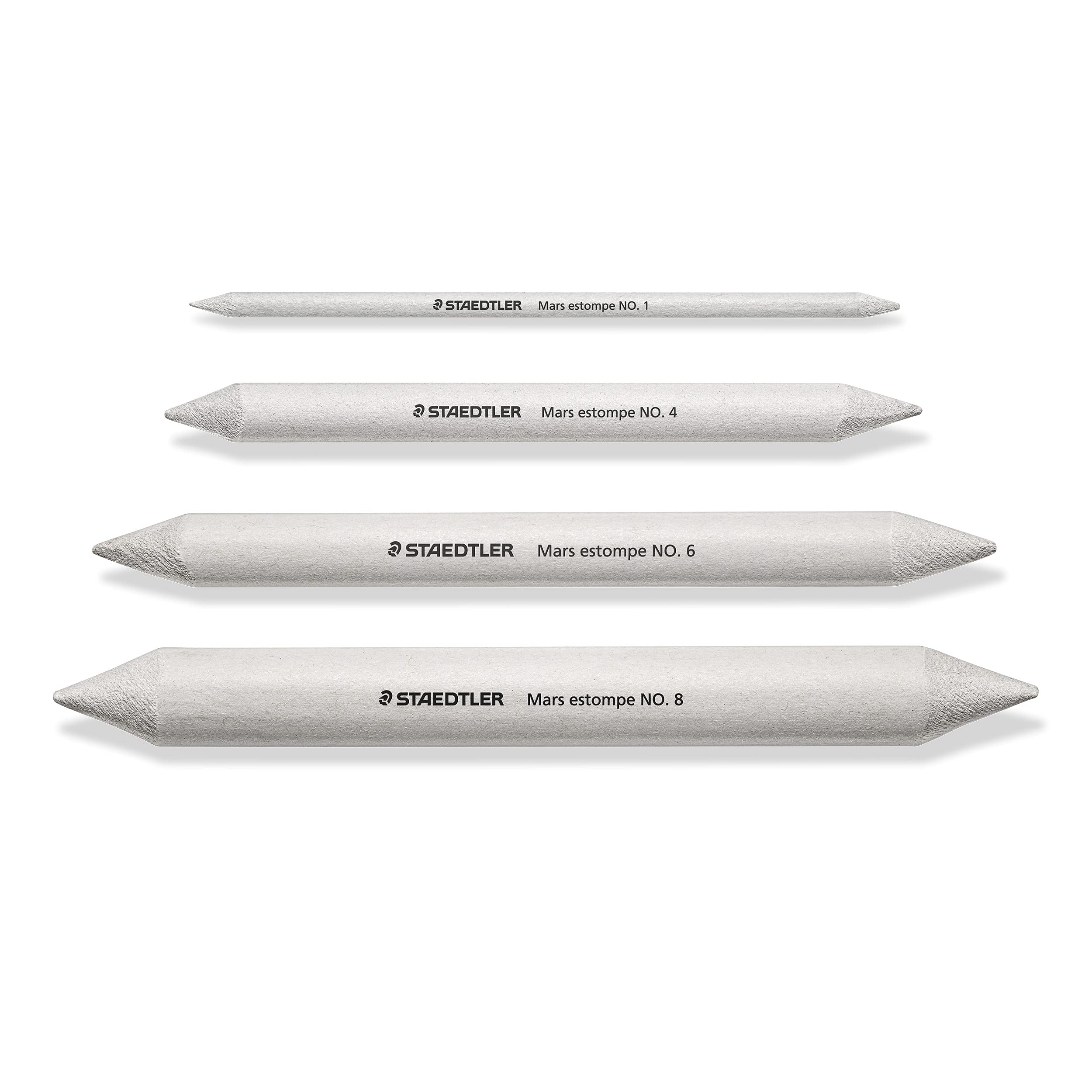 STAEDTLER 5426-S BK4ST Papierwischer, für alle verwischbaren Zeichenmaterialien, spitzbar mit Sandpapier, Blisterkarte mit 4 Papierwischern in verschiedenen Grössen, 5426-S BK4