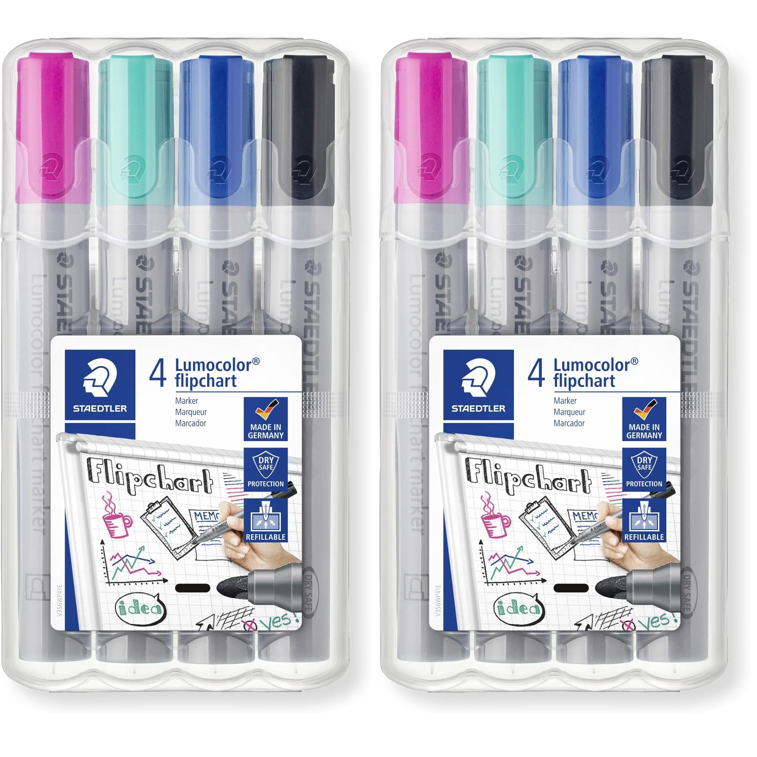 - Lieferumfang: STAEDTLER Box mit 4 Lumocolor flipchart marker in sortierten Farben