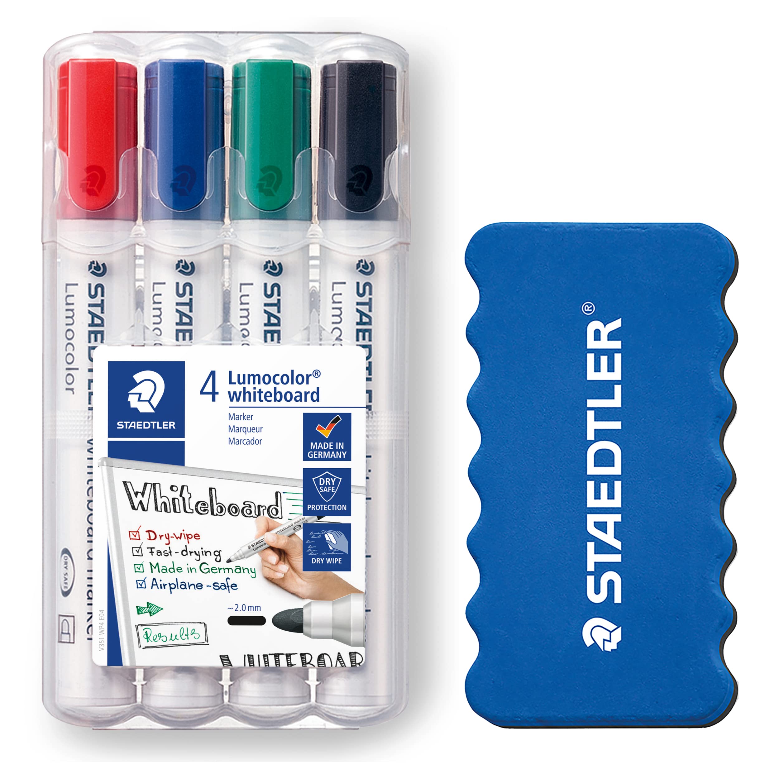 STAEDTLER Lumocolor whiteboard marker und whiteboard Schwamm 351 WP4 P1XQualitativ hochwertiger Whiteboard-Marker. Rundspitze mit ca. 2mm Linienbreite. Zum trocken abwischbaren Beschriften von Whiteboards und Flächen wie Glas und Porzellan.