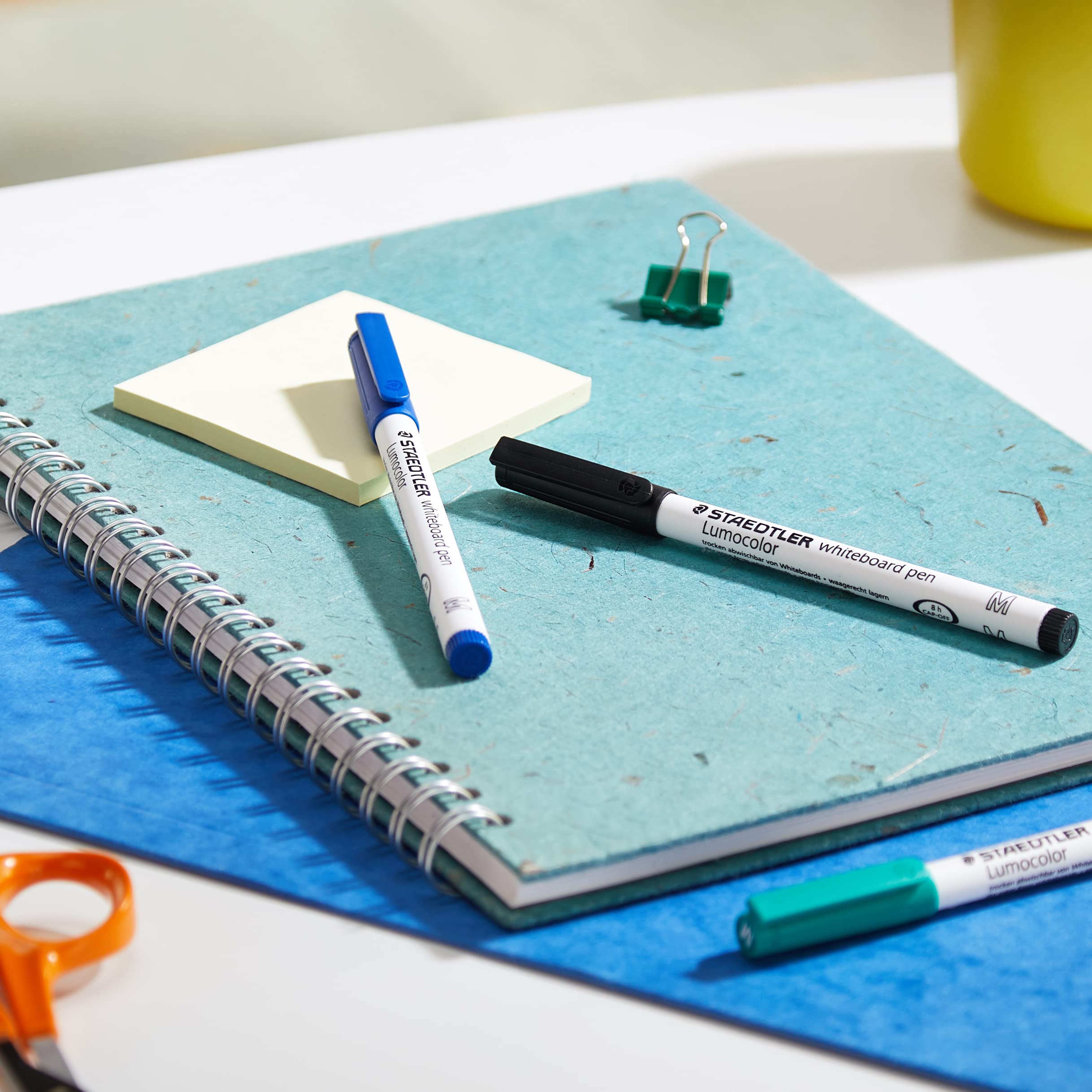 STAEDTLER Whiteboard pen Lumocolor, Rundspitze ca. 1 mm Linienbreite, trocken und rückstandsfrei abwischbar von Whiteboards, hohe Qualität Made in Germany, Set mit 4 brillanten Farben, 301 WP4