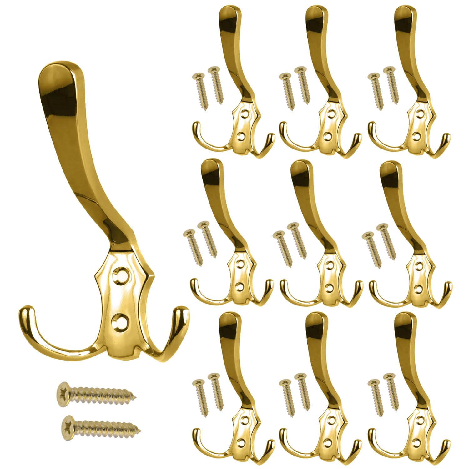 Stahlia Garderobenhaken GOLD (10 Stück) Haken zum Schrauben vintage Kleiderhaken Garderobe LANG Haken für Garderobe Metallhaken