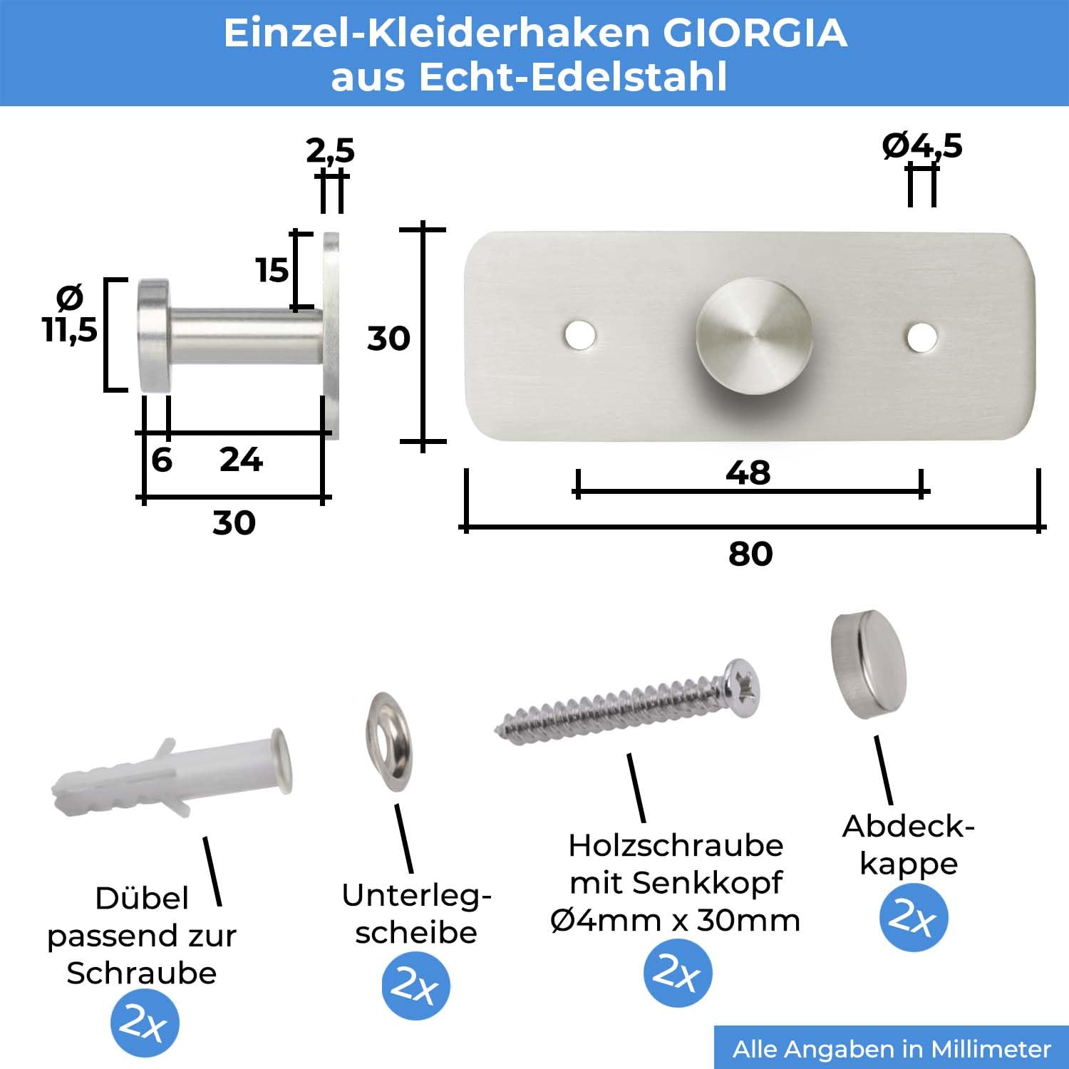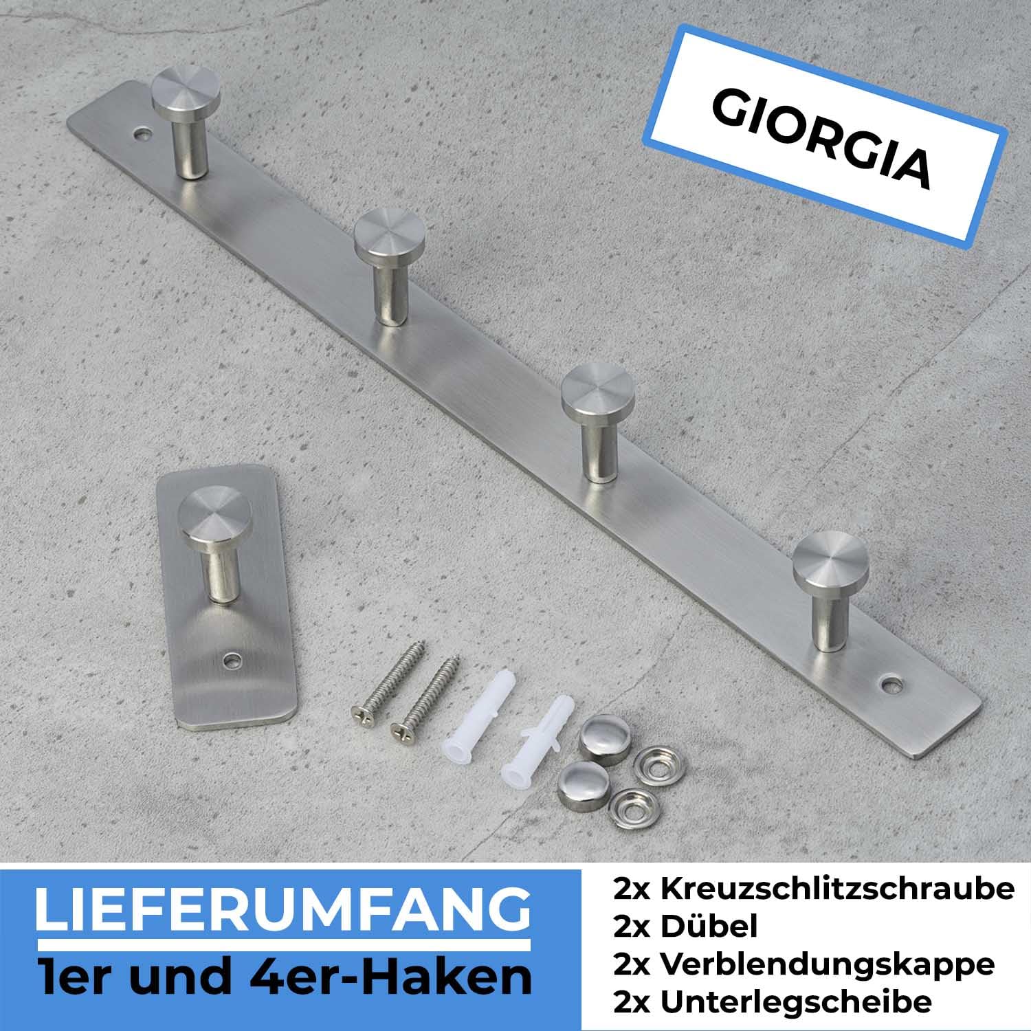 Stahlia Hakenleiste EDELSTAHL gebürstet Garderobenleiste 1x Haken (L: 80mm) Modell:GIORGIA Wandgarderobe mit 1/4/6/8/10 Kleiderhaken Garderobenhaken Wandhaken