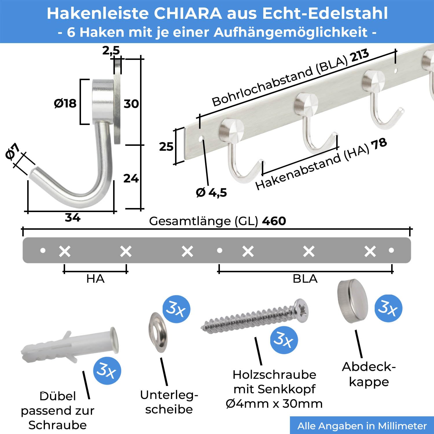 Entdecken Sie die perfekte Lösung für Ihre Garderobe mit unserer Garderoben Hakenleiste, die eine ideale Ergänzung für jeden Flur oder Flur Möbel ist. Diese Hakenleiste Garderobe aus hochwertigem Edelstahl V2A, der nicht rostet, ist für die Wandmontage konzipiert und wird mit Befestigungsschrauben geliefert, sodass Sie Ihre Kleiderhaken Wand oder Garderobenhaken Edelstahl mit Leichtigkeit anbringen können. Die Wandhaken zum Schrauben sind robust und garantieren eine hohe Tragkraft, ideal für Jacken Haken Wand, Jackenhalter Wand und sogar im Kinderzimmer als Teil der Garderobe Kinder. Die Hakenleiste bietet Flexibilität in Grösse und Stil, erhältlich in 5 Längen mit bis zu 10 Haken, und passt sich somit Ihren Bedürfnissen und Ihrem Platzangebot an. Ob Sie eine Garderobe Wand suchen oder eine praktische Lösung für Kleiderhaken Garderobe benötigen, unsere Garderobenhaken bieten eine elegante und langlebige Option. Egal ob Für die Kinder Garderobe oder als Hakenleiste Küche macht die Haken Garderobe immer etwas her. Ihre massive Ausführung und das einfache, aber elegante Design machen diese Hakenleiste zu einem unverzichtbaren Bestandteil Ihrer Wandhaken Garderobe. Ideal für den Einsatz in verschiedenen Räumen, unsere Garderoben Hakenleiste ist nicht nur für Flur geeignet, sondern auch als nützliche Ergänzung für Flur Möbel, um Ordnung und Stil zu kombinieren. Als Wandhaken in Ihrem Wohnbereich oder als funktionales Element in Ihrer Garderobe, unsere Hakenleiste ist eine vielseitige und stilvolle Wahl für Ihr Zuhause.