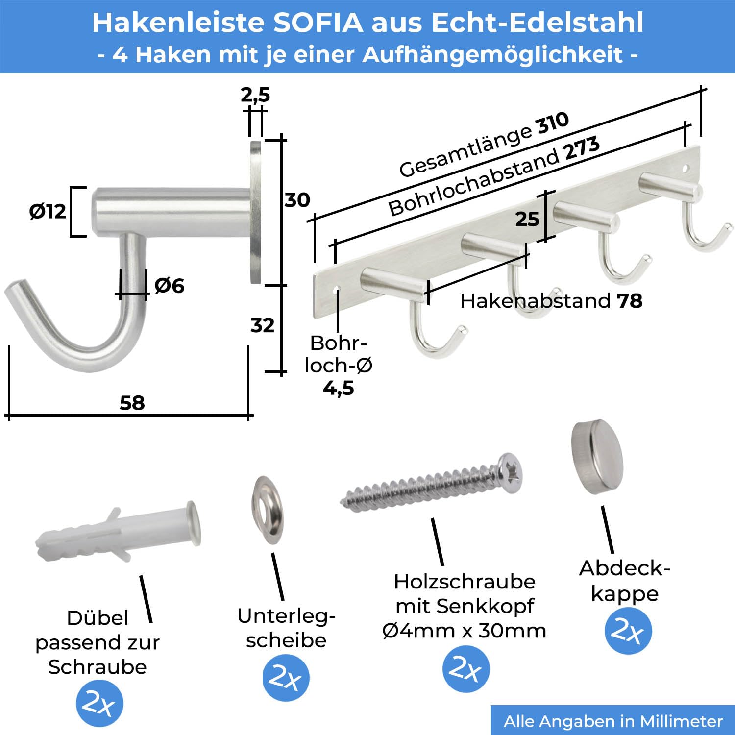 Entdecken Sie die perfekte Lösung für Ihre Garderobe mit unserer Garderoben Hakenleiste, die eine ideale Ergänzung für jeden Flur oder Flur Möbel ist. Diese Hakenleiste Garderobe aus hochwertigem Edelstahl V2A, der nicht rostet, ist für die Wandmontage konzipiert und wird mit Befestigungsschrauben geliefert, sodass Sie Ihre Kleiderhaken Wand oder Garderobenhaken Edelstahl mit Leichtigkeit anbringen können. Die Wandhaken zum Schrauben sind robust und garantieren eine hohe Tragkraft, ideal für Jacken Haken Wand, Jackenhalter Wand und sogar im Kinderzimmer als Teil der Garderobe Kinder. Die Hakenleiste bietet Flexibilität in Grösse und Stil, erhältlich in 5 Längen mit bis zu 10 Haken, und passt sich somit Ihren Bedürfnissen und Ihrem Platzangebot an. Ob Sie eine Garderobe Wand suchen oder eine praktische Lösung für Kleiderhaken Garderobe benötigen, unsere Garderobenhaken bieten eine elegante und langlebige Option. Egal ob Für die Kinder Garderobe oder als Hakenleiste Küche macht die Haken Garderobe immer etwas her. Ihre massive Ausführung und das einfache, aber elegante Design machen diese Hakenleiste zu einem unverzichtbaren Bestandteil Ihrer Wandhaken Garderobe. Ideal für den Einsatz in verschiedenen Räumen, unsere Garderoben Hakenleiste ist nicht nur für Flur geeignet, sondern auch als nützliche Ergänzung für Flur Möbel, um Ordnung und Stil zu kombinieren. Als Wandhaken in Ihrem Wohnbereich oder als funktionales Element in Ihrer Garderobe, unsere Hakenleiste ist eine vielseitige und stilvolle Wahl für Ihr Zuhause.