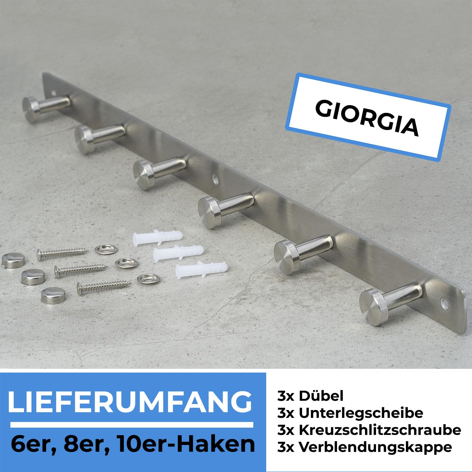Stahlia Hakenleiste EDELSTAHL gebürstet Garderobenleiste 10x Haken (L: 770mm) Modell:GIORGIA Wandgarderobe mit 1/4/6/8/10 Kleiderhaken Garderobenhaken Wandhaken