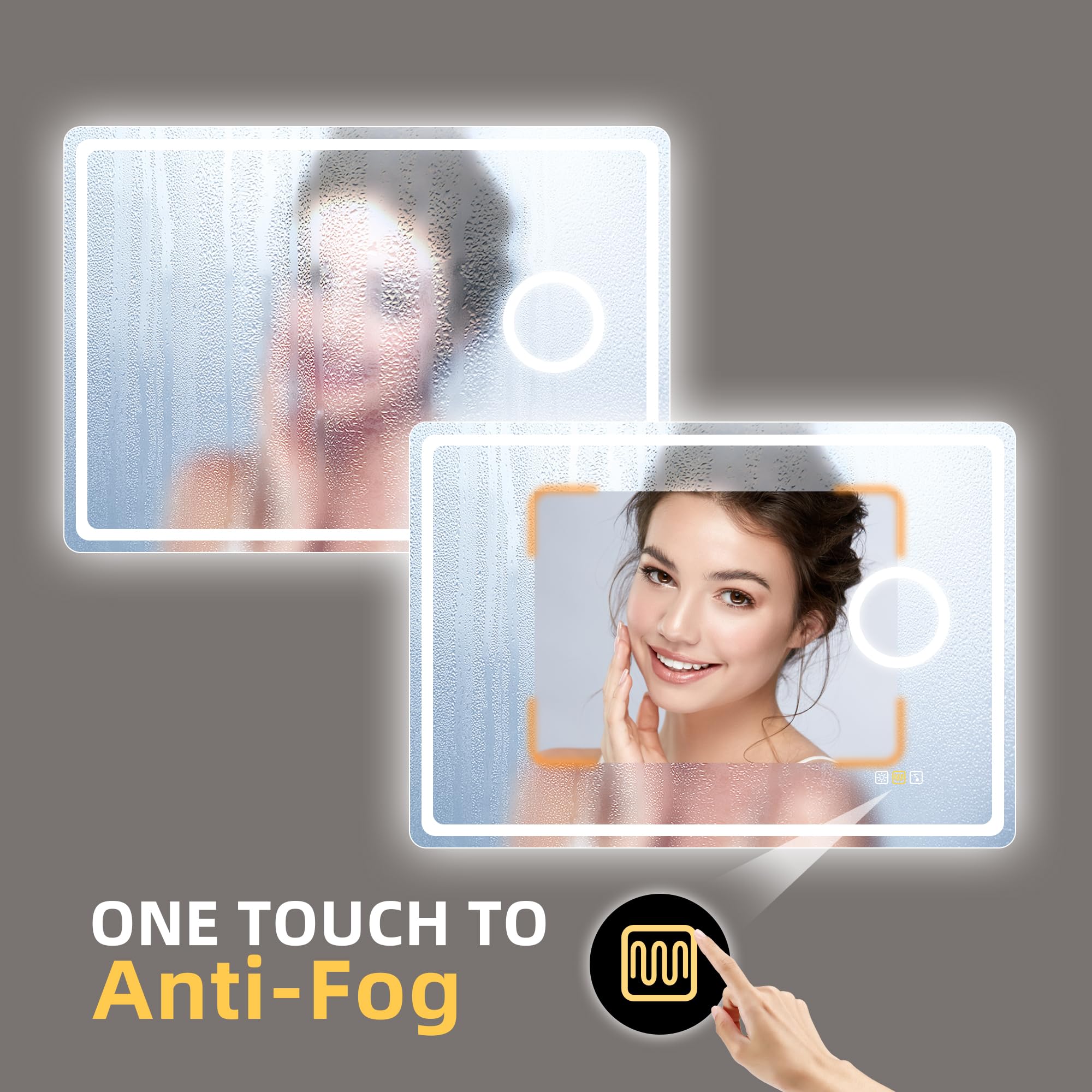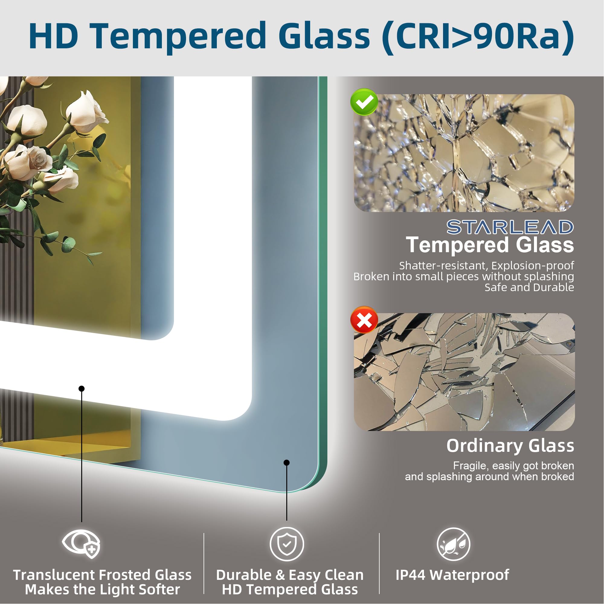 【Farbwechsel, Dimmen, Memory】- STARLEAD Badspiegel mit Beleuchtung hat verschiedene Lichteinstellungen, die einfach über empfindliche Touch-Tasten gesteuert werden können. Doppelklicken Sie auf die Taste "Licht", um die Lichtfarbe zu ändern: weiss (6000K), neutral (4500K), warm (3000K), drücken Sie lange auf die Taste "Licht", um die Helligkeit auf ein angenehmes Niveau (100%~5%) einzustellen. Dieser Spiegel mit Beleuchtung hat eine Speicherfunktion, um die letzte Lichteinstellung zu behalten. 【Doppelte Bluetooth-Lautsprecher】- Stellen Sie sich das schöne Bild vor, Musik im warmen Wassernebel zu hören.STARLEAD Badspiegel hat 2 Bluetooth-Lautsprecher auf der Rückseite, um einen besseren Höreffekt zu erzielen. Es ermöglicht Ihnen, Musik zur gleichen Zeit zu geniessen, wenn Sie Make-up auftragen, Ihr Gesicht waschen oder andere tägliche Aktivitäten. Berühren Sie einfach den "Bluetooth-Musik"-Schalter und verbinden Sie Ihr Bluetooth-Gerät, um Musik abzuspielen. 【Badezimmerspiegel mit 5x Vergrösserung】 - STARLEAD Badspiegel hat einen eingebauten runden Spiegel mit 5x Vergrösserung und Licht. Der Spiegel mit Vergrösserungsglas ist bequemer für das tägliche Make-up und die Rasur, und es ist einfacher, die Details des Gesichts zu beobachten, um ein perfektes Make-up zu schaffen. Das Licht des Vergrösserungsspiegels ändert sich mit der Helligkeit und Farbe des Hauptlichts.