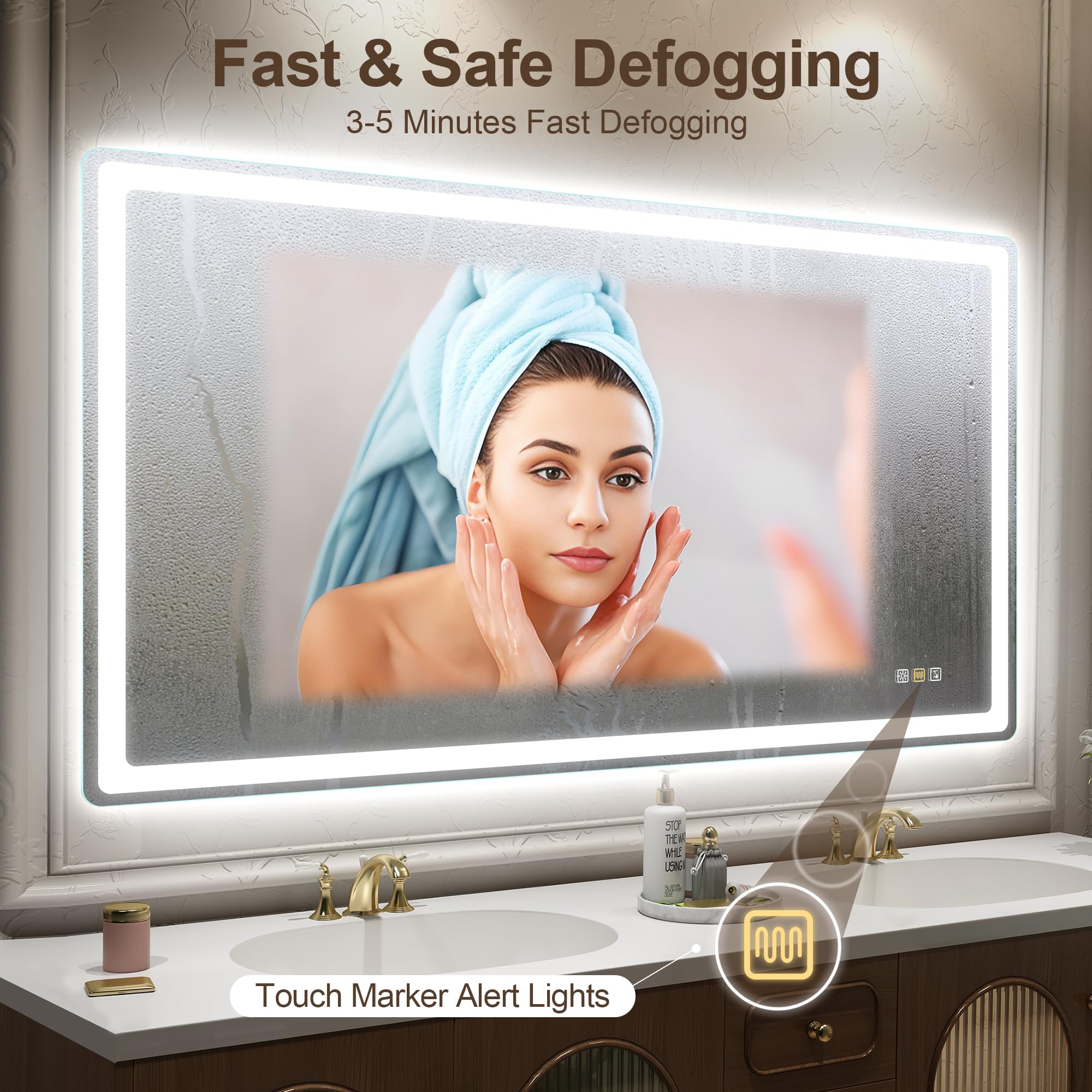 【3 Farbtemperaturen & dimmbar】STARLEAD 80 x 140cm badspiegel mit beleuchtung hat 3 Farbtemperaturen (3000k warmes Licht/4000k natürliches Licht/6500k kaltes weisses Licht), den besten Look unter verschiedenen Lichtern zu schaffen. Stufenlos dimmbar, berühren Sie einfach die Lichttaste für 3 Sekunden, die Helligkeit des Spiegels einzustellen (5%-100%). Sanftes Licht Ihre Augen zu schützen. Hochwertige Energiesparleiste mit 120 LED-Perlen pro Meter, spart Strom und hält bis zu 50.000+ Stunden