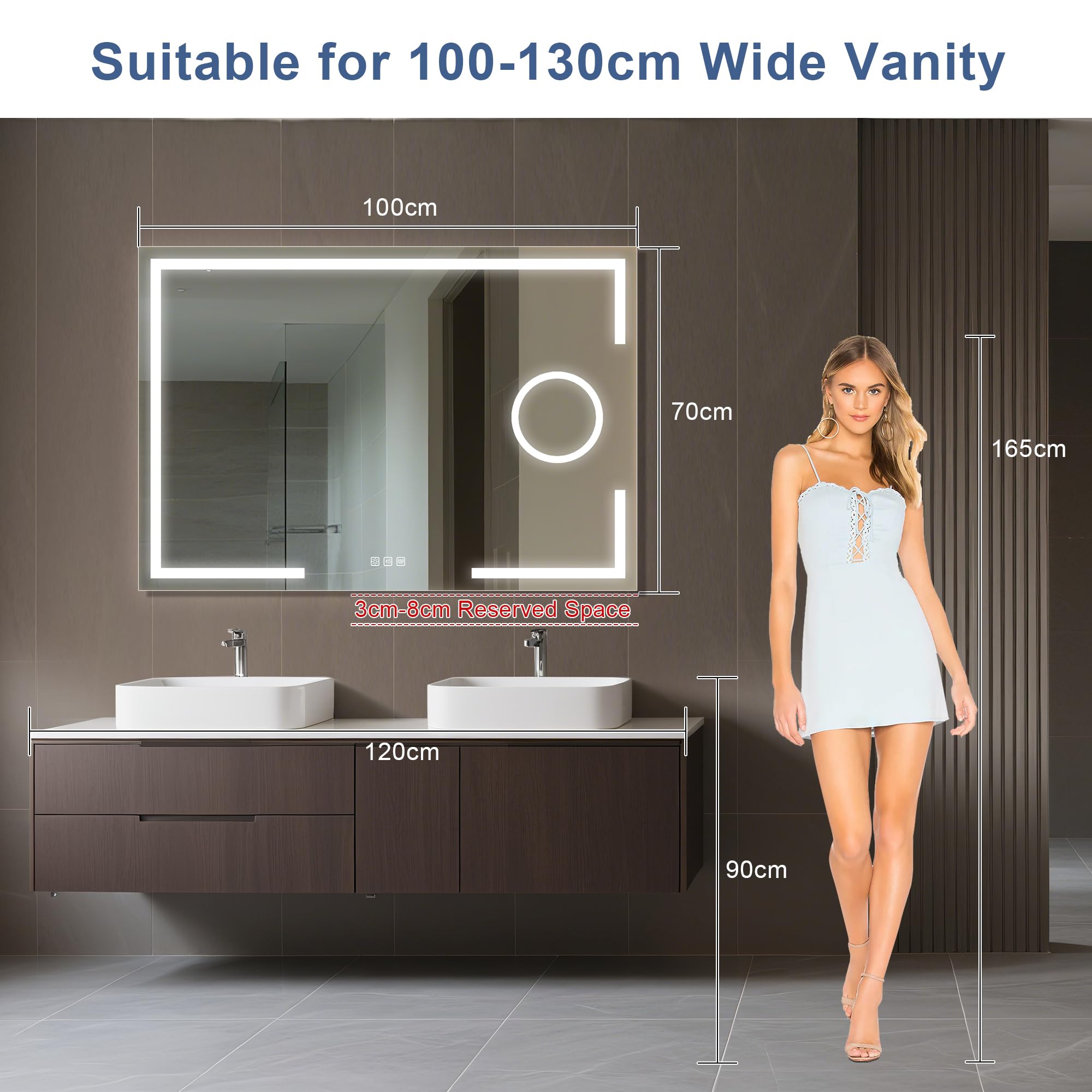 STARLEAD Badspiegel-mit-Beleuchtung 100x70cm, Badezimmerspiegel mit 5X Vergrösserungsspiegel-mit-Licht, 3 Lichtfarben, Einstellbare Helligkeit, Entfoggen, IP44 LED-Spiegel-Bad, HD Hartglas
