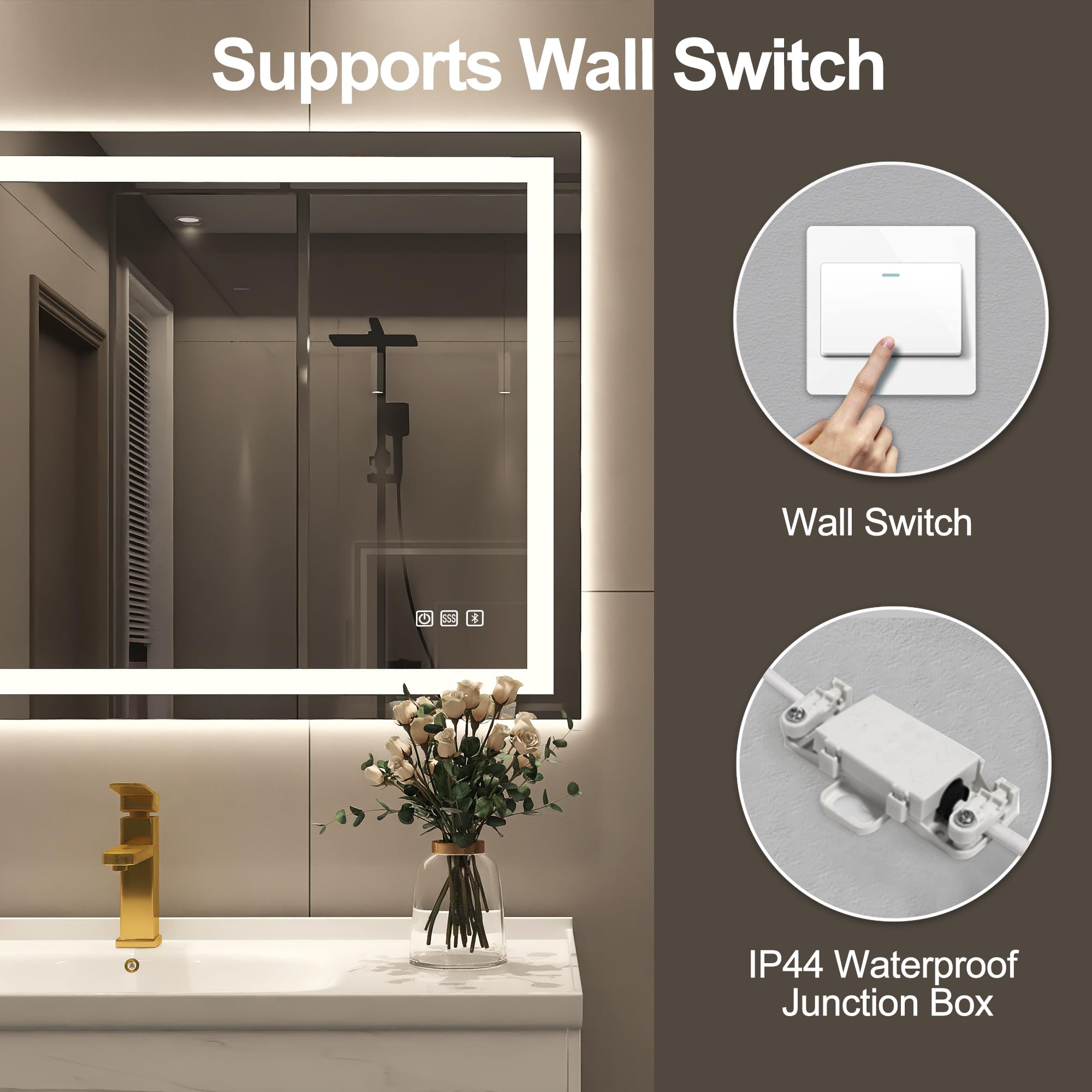 3 Farbtemperaturen & Dimmbar: Der STARLEAD 60 x 80 cm grosse Badezimmerspiegel mit LED-Leuchten hat 3 Farbtemperaturen (3000 K warmes Licht/4000 K natürliches Licht/6500 K kaltweisses Licht), um den besten Look unter verschiedenen Lichtern zu schaffen. Stufenlos dimmbar, berühre einfach die Lichttaste für 3 Sekunden, um die Helligkeit des Spiegels einzustellen (5–100 %). Weiches Licht, das deine Augen schützt. Hochwertiger energiesparender Streifen mit 120 LED-Perlen pro Meter, spart Strom und hält bis zu 50.000+ Stunden. Bluetooth- und Memory-Funktion: Hörst du gerne Musik beim Duschen? Der STARLEAD LED-Badspiegel zur Wandmontage hat 2 Bluetooth-Lautsprecher auf der Rückseite. Schalte den Bluetooth-Schalter ein und verbinde dich mit deinem Bluetooth-Gerät, um deine Lieblingsmusik abzuspielen und dich zu entspannen. Aufgrund der Speicherfunktion kannst du jedes Mal, wenn du den Badezimmerspiegel neu startest, zum vorherigen Lichtstatus zurückkehren, ohne ihn zurückzusetzen. Touch-Markierungslicht kann ausgeschaltet werden, ohne deinen Schlaf zu stören. Entnebelungsfunktion & Wasserdicht & Gehärtetes Glas: Der STARLEAD LED-Badspiegel hat eine Entnebelungsfunktion, es ist nicht nötig, den Spiegel abzuwischen, die Mitte des Spiegels wird teilweise erhitzt, um eine klare Reflexion zu gewährleisten. Das Entnebeln dauert etwas Zeit, bitte schalte es 5 Minuten im Voraus ein. Der LED-Streifen ist wasserdicht nach IP65 und der LED-Spiegel ist wasserdicht nach IP44, geeignet für den Einsatz in nassen Umgebungen. Der Badezimmerspiegel besteht aus gehärtetem HD-Glas mit CRI>90+, ist unzerbrechlich und sicherer zu bedienen.