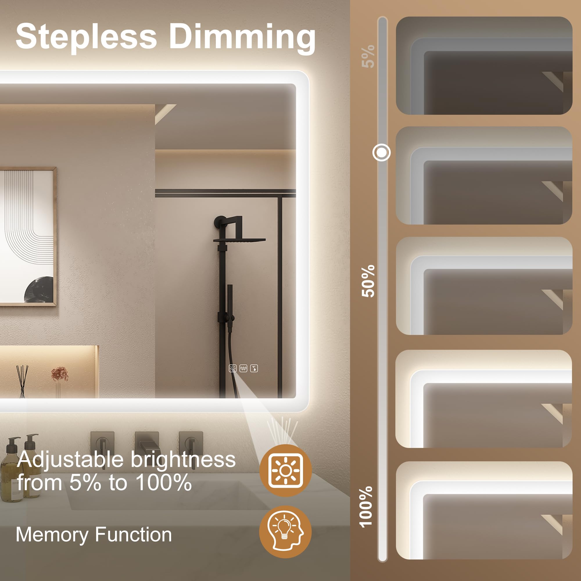 【3 Farbtemperaturen & Dimmbar】STARLEAD 80 x 140cm badspiegel mit beleuchtung hat 3 Farbtemperaturen (3000k warmes Licht/4000k natürliches Licht/6500k kaltes weisses Licht), den besten Look unter verschiedenen Lichtern zu schaffen. Stufenlos dimmbar, berühren Sie einfach die Lichttaste für 3 Sekunden, die Helligkeit des Spiegels einzustellen (10%-100%). Sanftes Licht Ihre Augen zu schützen. Hochwertige Energiesparleiste mit 120 LED-Perlen pro Meter, spart Strom und hält bis zu 50.000+ Stunden.