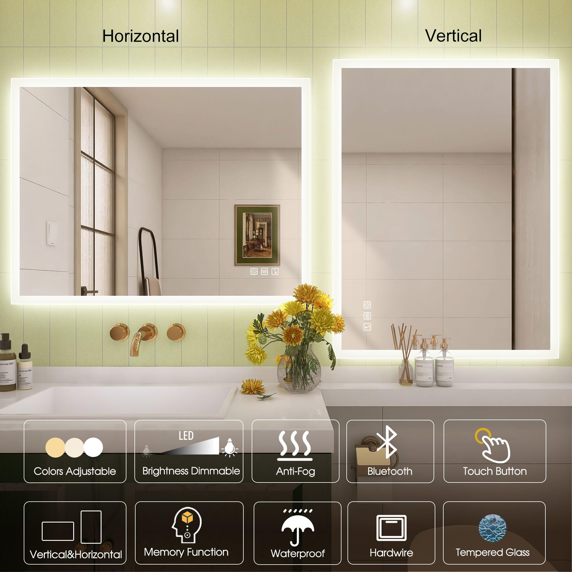 STARLEAD Bad-Spiegel-mit-Beleuchtung 100x70 cm, Spiegel-Bad-mit-Beleuchtung und Bluetooth, Entfoggen, Led-Spiegel-Bad mit 3 Lichtfarben, Dimmbar, Speicherfunktion, Horizontal/Vertikal, HD Hartglas