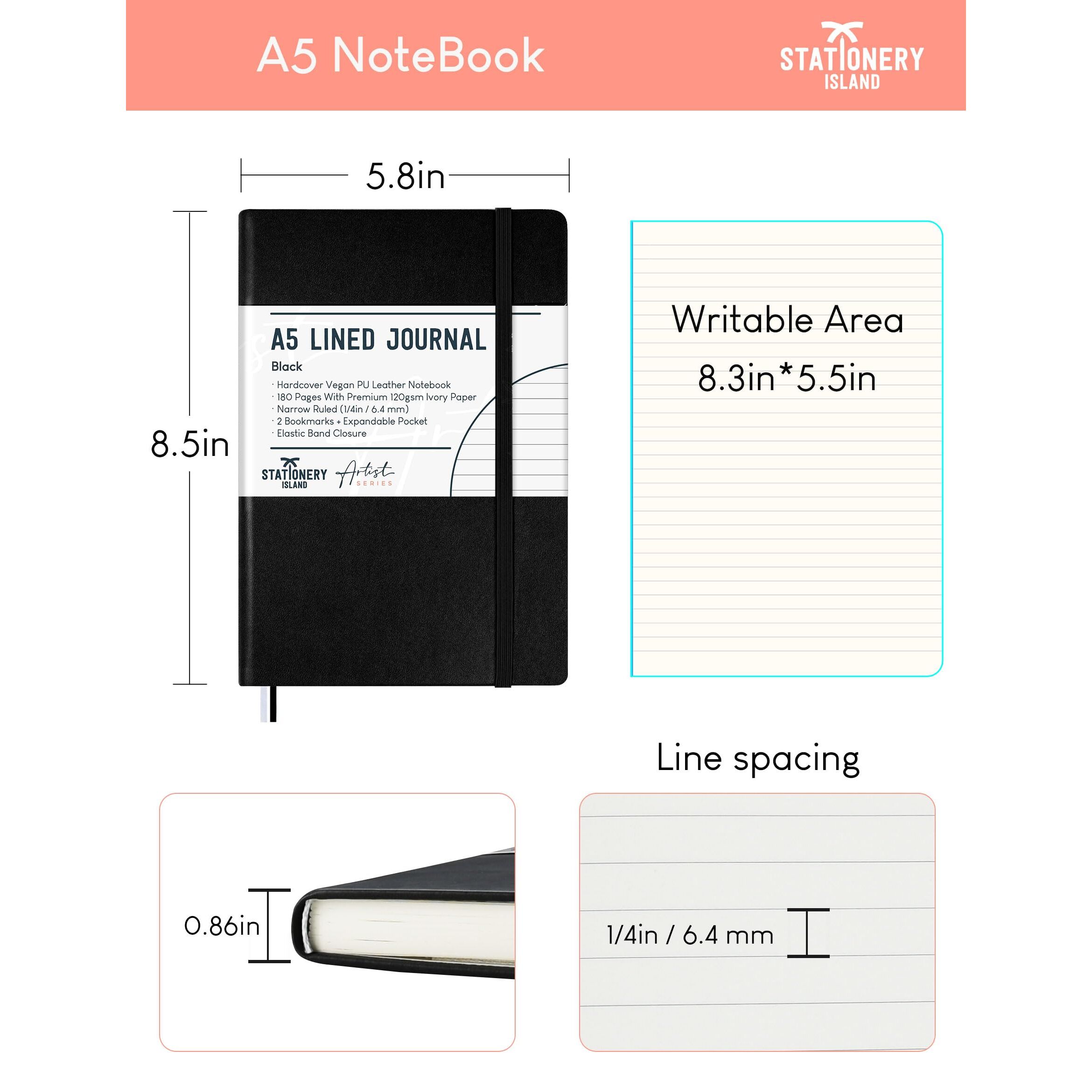 STATIONERY ISLAND Notizbuch A5 Liniert, Journal Hardcover mit 120 g/m² Dickem Papier, 180 Seiten Tagebuch, Notebook a5 für Mädchen, Reisetagebuch, Planen, Lernen, Schreiben