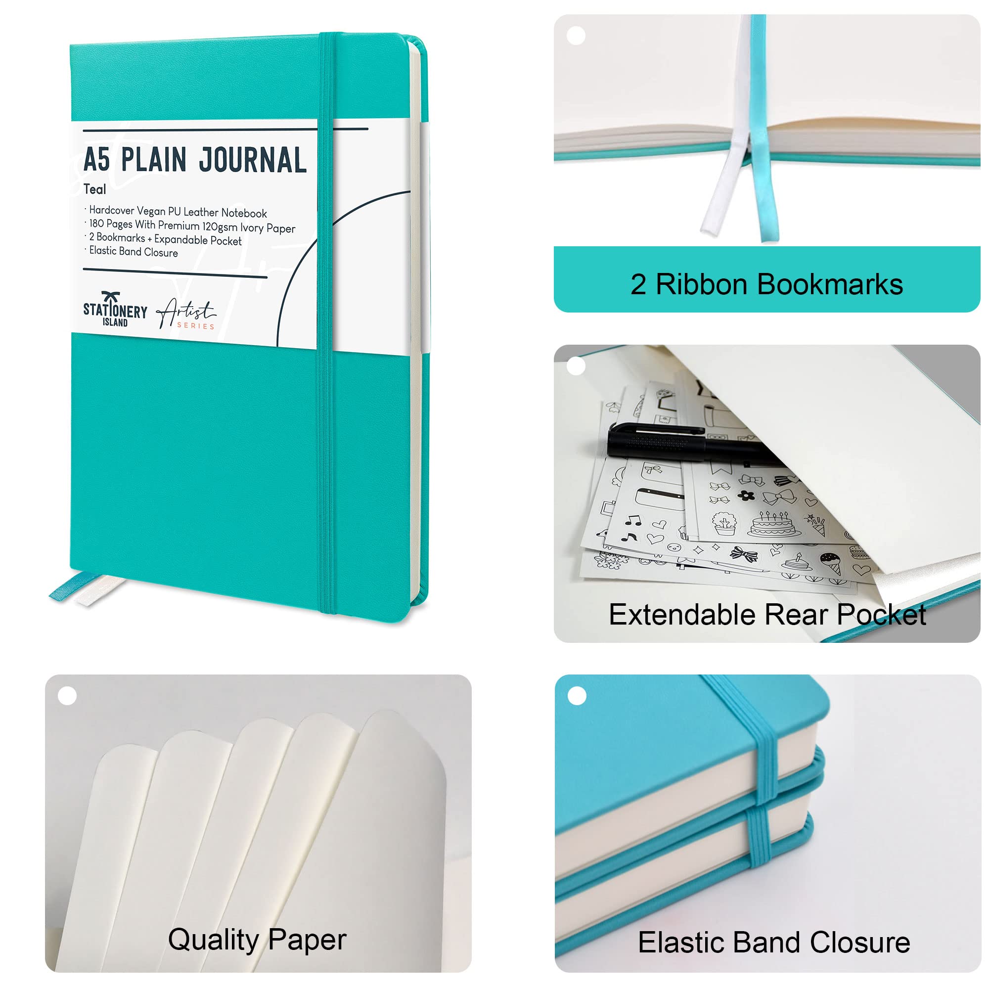 STATIONERY ISLAND Notizbuch A5 Blanko, Journal Hardcover mit 120 g/m² Dickem Papier, 180 Seiten Tagebuch, Notebook a5 für Mädchen, Reisetagebuch, Planen, Lernen, Schreiben