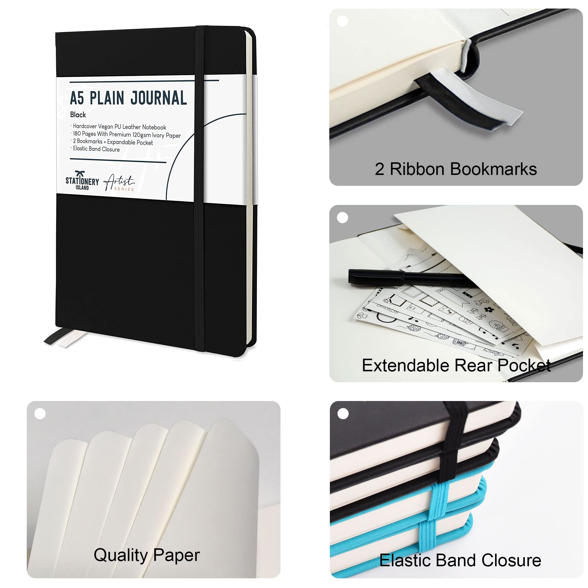 STATIONERY ISLAND Notizbuch A5 Blanko, Journal Hardcover mit 120 g/m² Dickem Papier, 180 Seiten Tagebuch, Notebook a5 für Mädchen, Reisetagebuch, Planen, Lernen, Schreiben