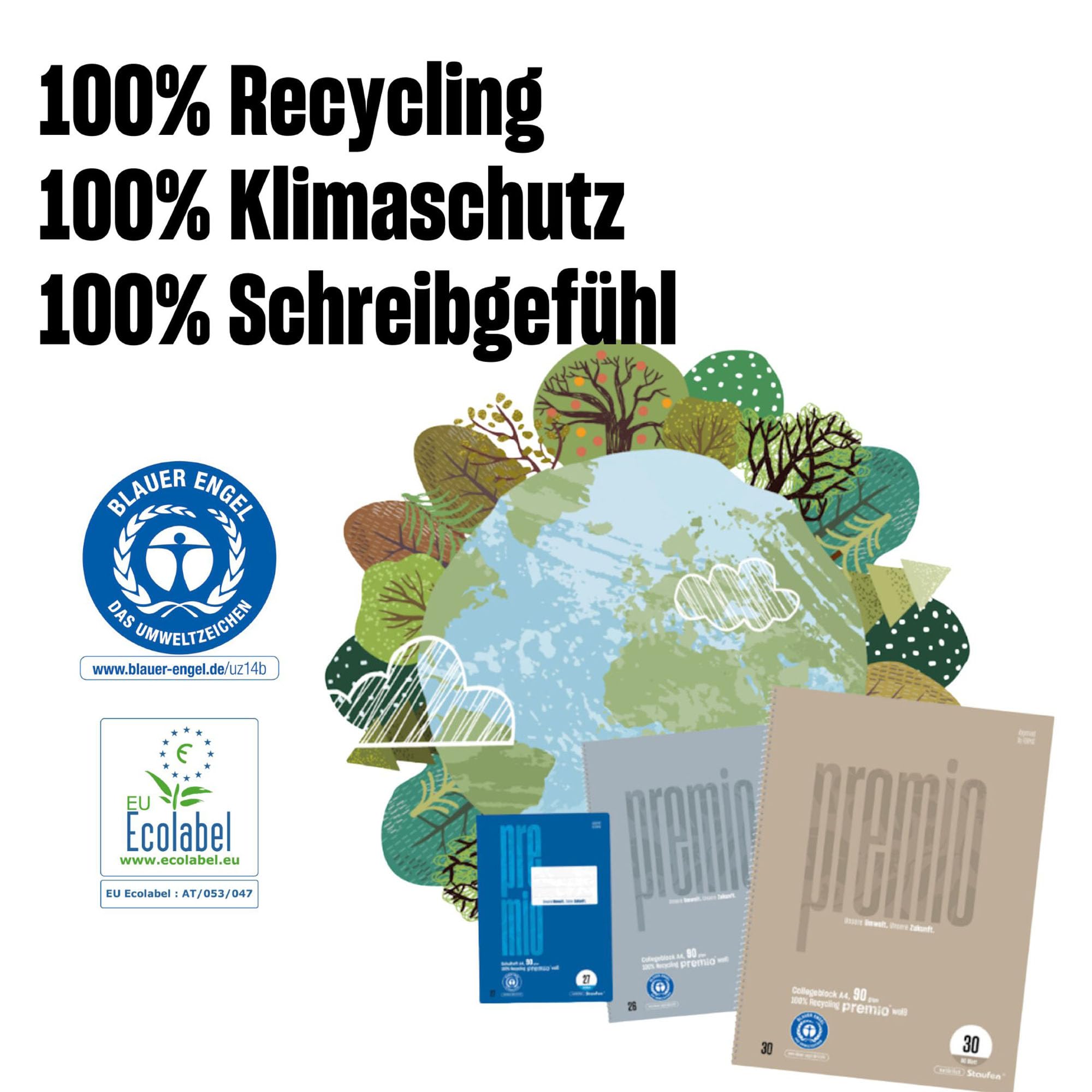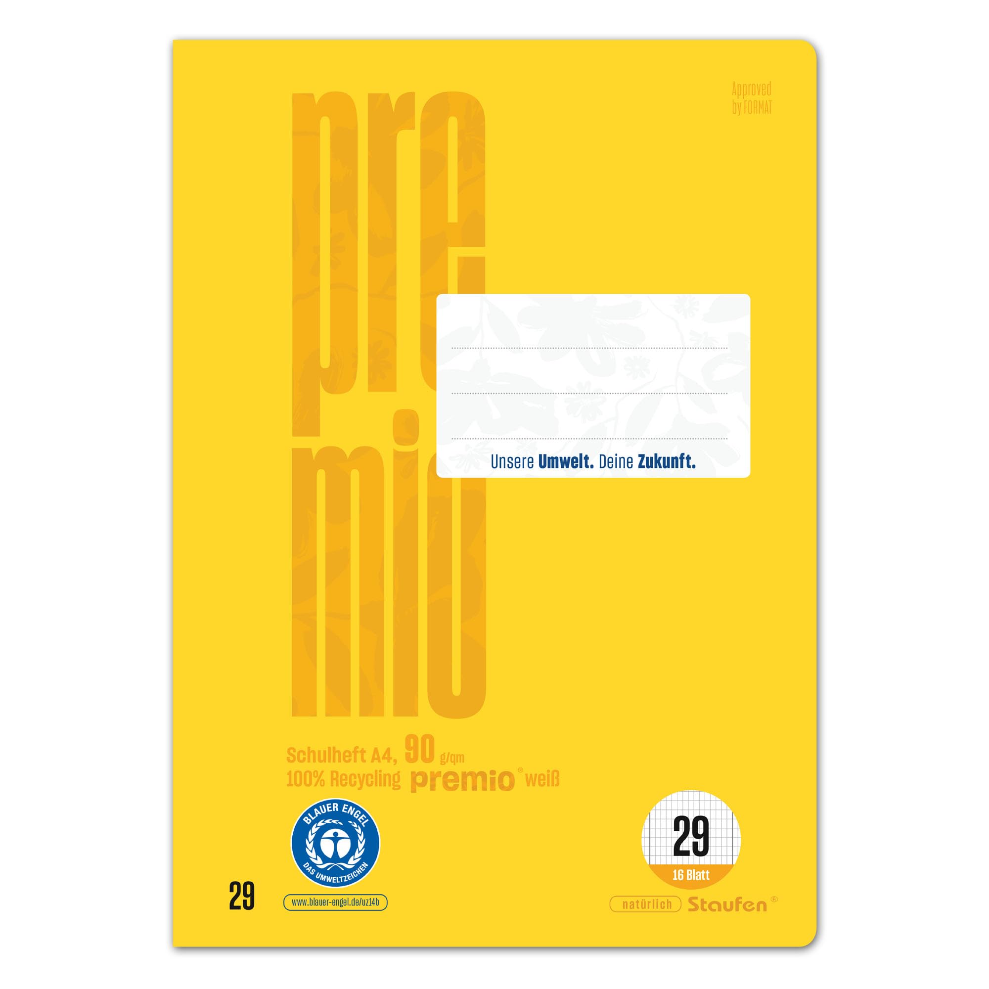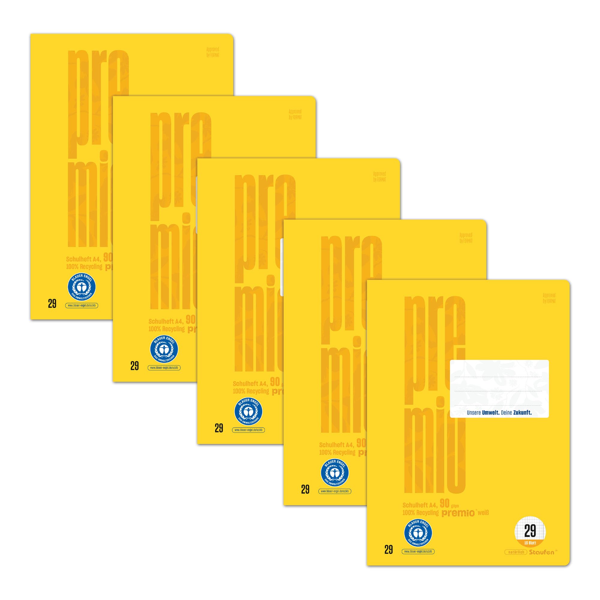 Staufen premio Schulheft - 5 Hefte je 16 Blatt, DIN A4, Lineatur 29 (5 x 9 mm rautiert mit RL), 90 g/m² Recyclingpapier