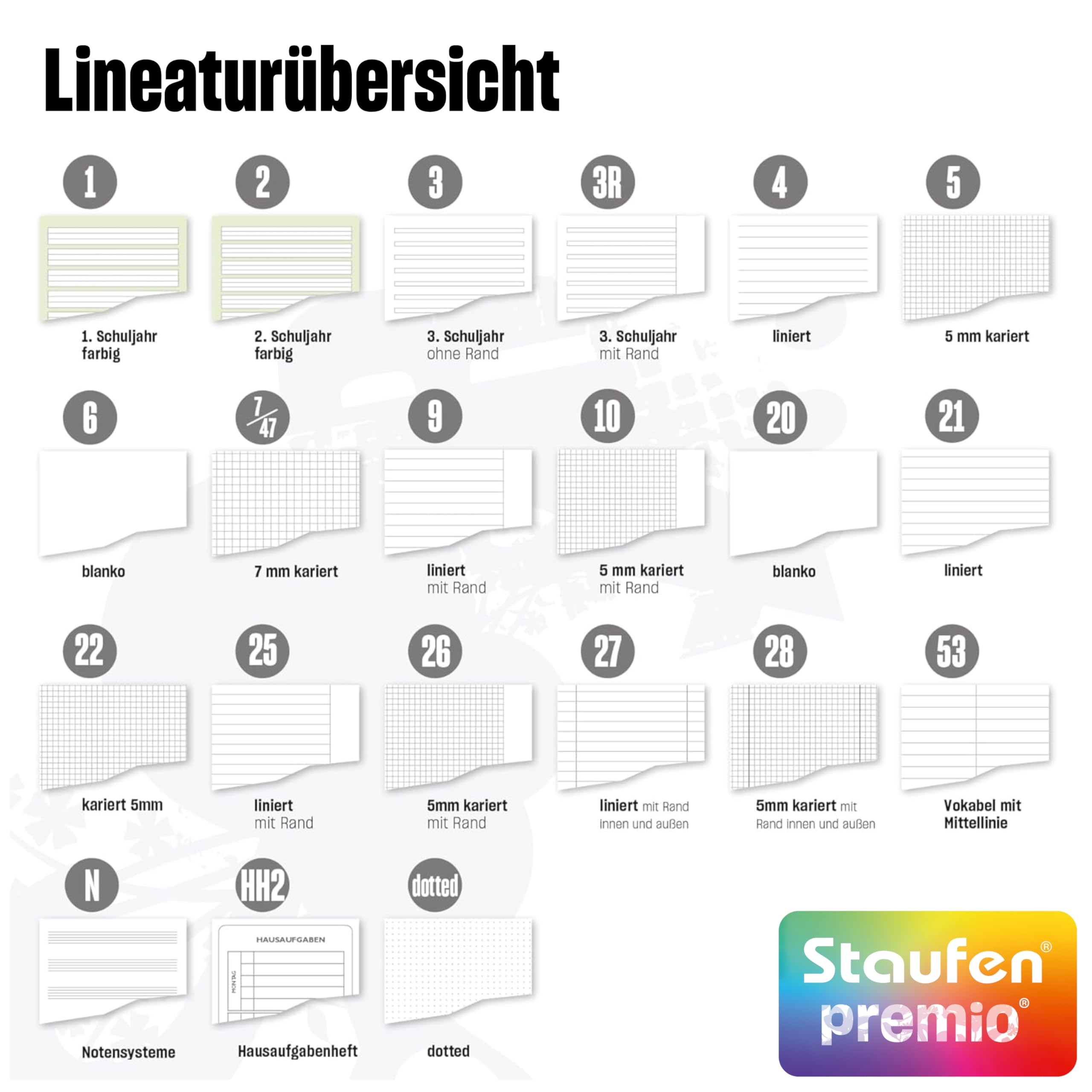 Schulheft · Format: A4 · Lineatur: LIN 38 (5mm kariert mit Rand perforiert) · 90g/m² · Inhalt: 16 Blatt · farbig hinterlegte Lineatur · runde Ecken verhindern "Eselsohren" · premiumweisses Recyclingpapier mit einzigartiger 90-Gramm-Qualität · Deckblatt mit 4 Motiven Das Staufen Green Schulheft lässt die Herzen umweltbewusster Verbraucher höher schlagen: Ausgezeichnet mit dem Umweltzeichen "Blauer Engel" und produziert in einem klimaneutralen Unternehmen steht es für Umweltschutz auf höchster Ebene.Weil es nicht gleichgültig ist, worin man schreibt, besteht dieses Schulheft zu 100% aus Recyclingpapier und setzt somit ein klares Statement für klimafreundliches Arbeiten in Schule - von klein an. Neben der hochwertigen Verarbeitung überzeugt dieses Produkt vor allem durch seinen formstabilen Umschlag und die abgerundeten Ecken: So bleibt das Heft bis zum Ende des Schuljahrs ohne Knicke und unschöne Eselsohren.