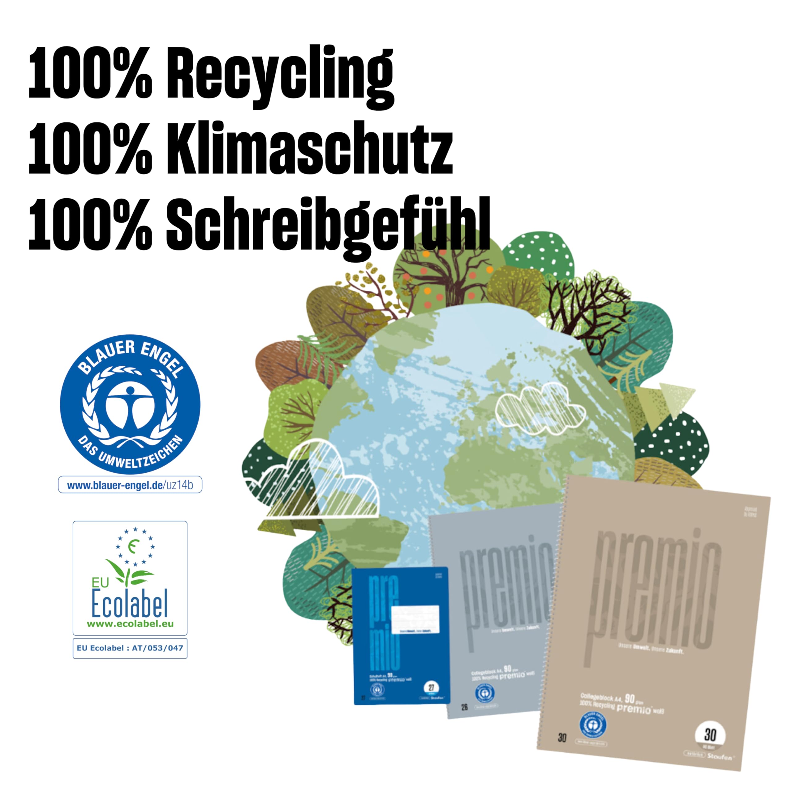 Staufen premio Schreiblernheft - 4 Hefte je 16 Blatt, DIN A4, Lineatur 1 (5/5/5mm liniert, farbig hinterlegte Lineatur), 90 g/m² Recyclingpapier, runde Ecken verhindern „Eselsohren“