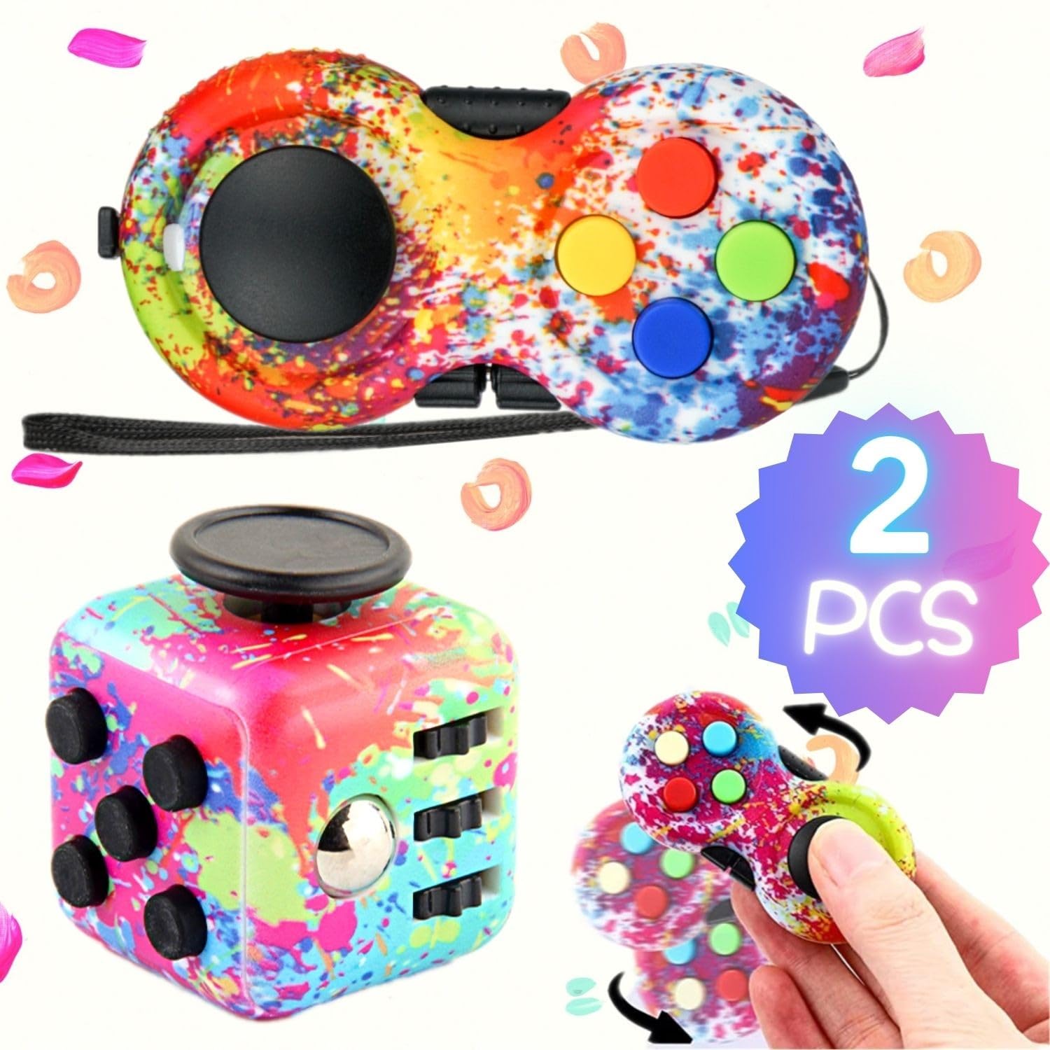 Steemjoey 2Pcs Anti-Stress Würfel Spielzeug, Fidget Toy Cube, Fidget Pad Controller zum Stressaubbau bei Nervösität für ADD, ADHS, Autismus, Teenager, Kinder, Erwachsene (Farbe)