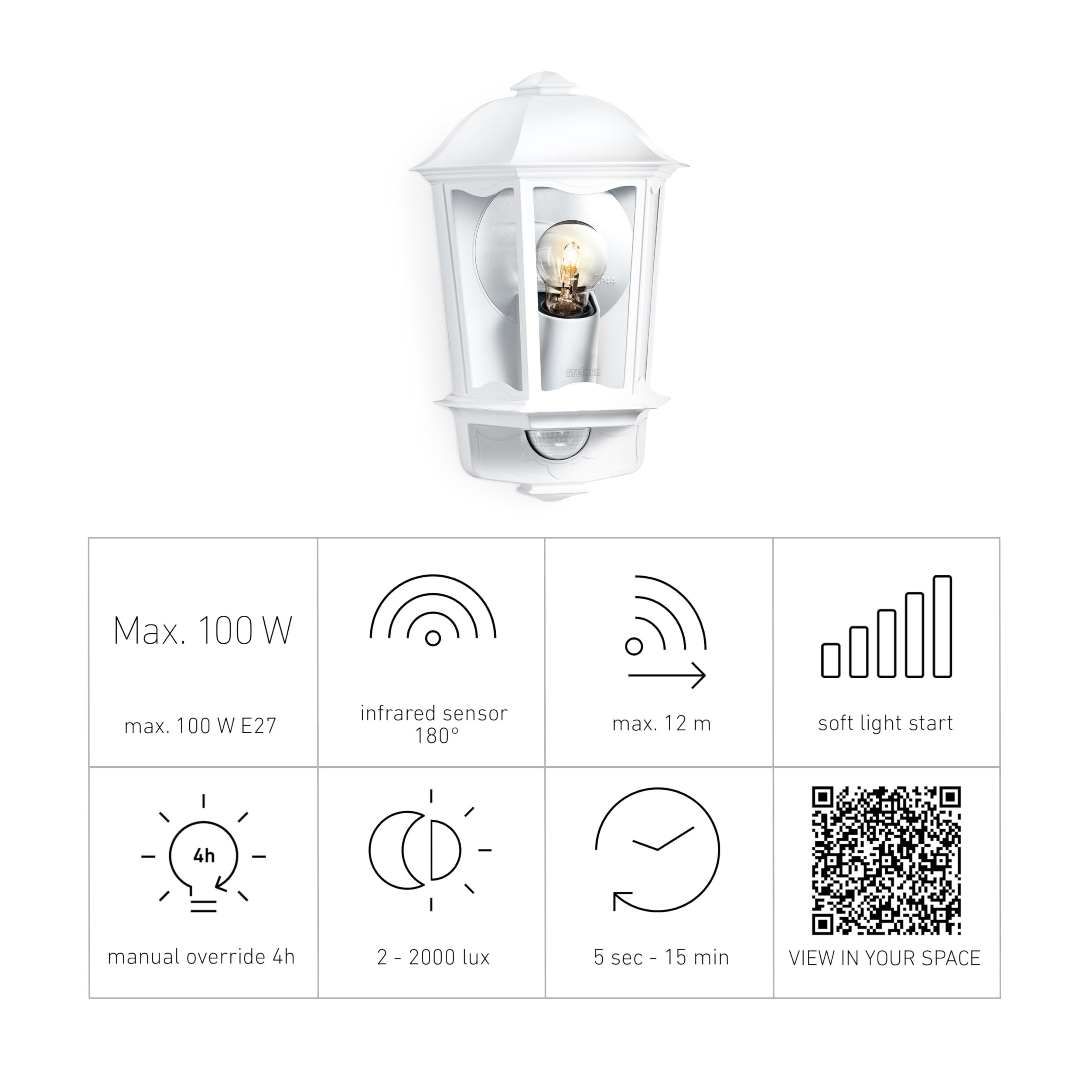 STEINEL Multisensortechnik für individuelle Licht- und Komfortfunktionen. Mit augenschonendem Soft-Lichtstart, Regulierung der Grundhelligkeit