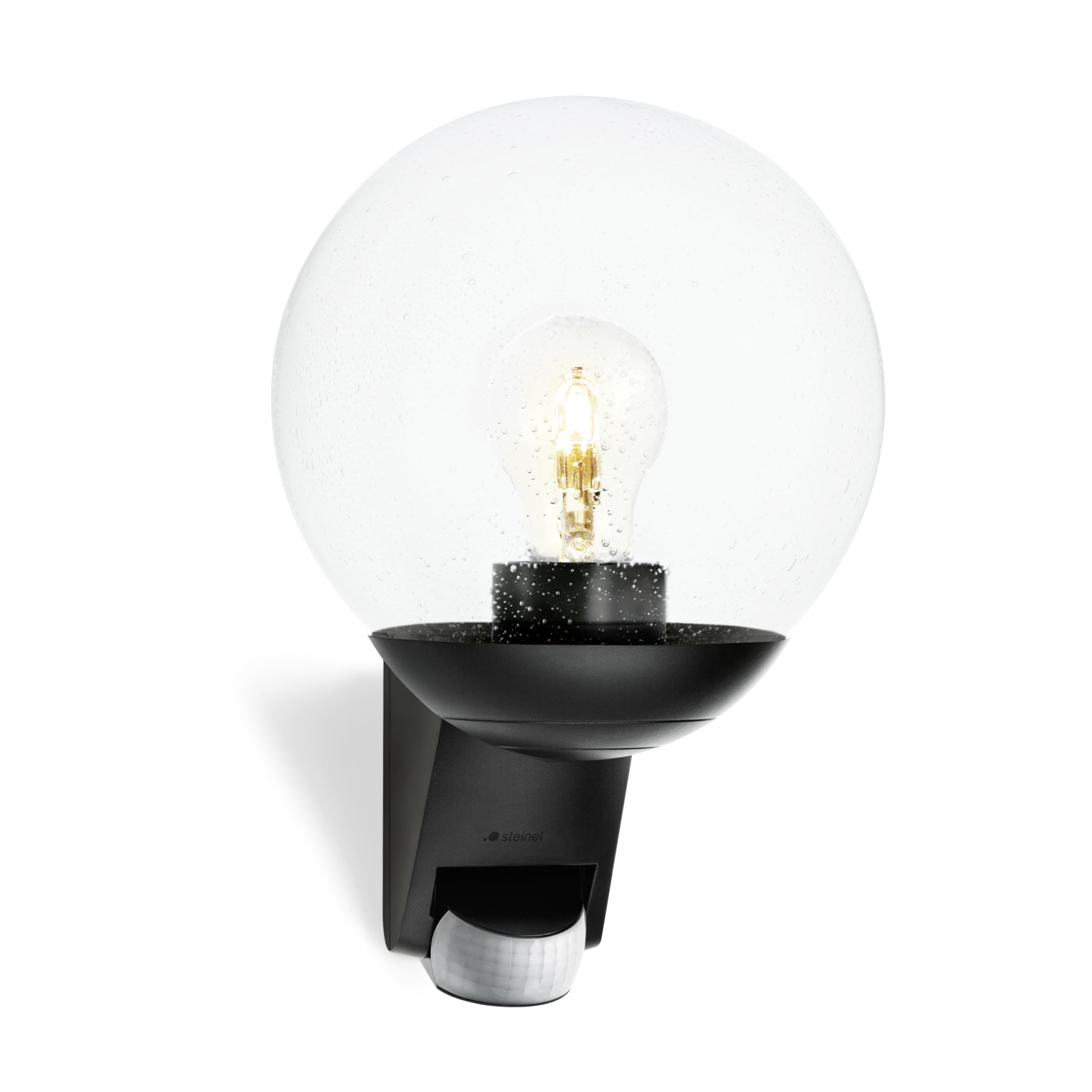 Steinel Aussenwandleuchte L 585 S schwarz, 180° Bewegungsmelder, Max. 10 m Reichweite, klassisch, mundgeblasenes Glas