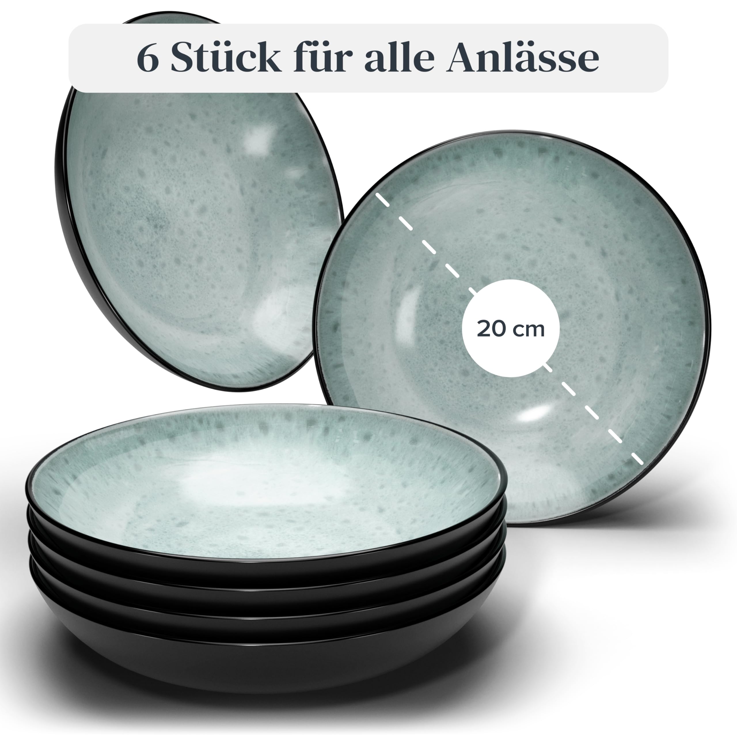Steingut Suppenteller 6 Personen Ibiza TESTSIEGER, Traumhaftes Mediterranes Steingut Tiefe Teller Set, Pasta Teller Tief Gross - Pure Living in Salbeigrün