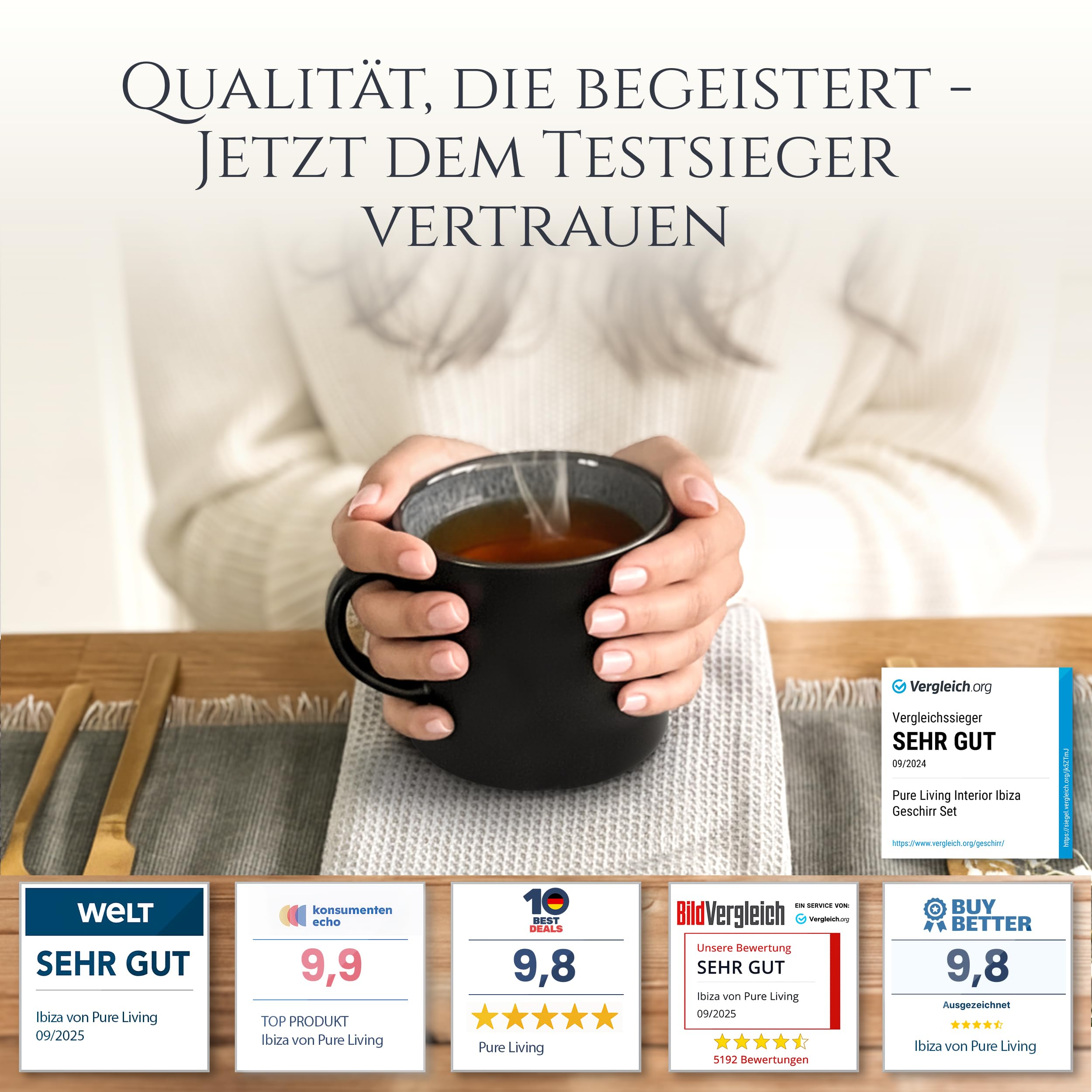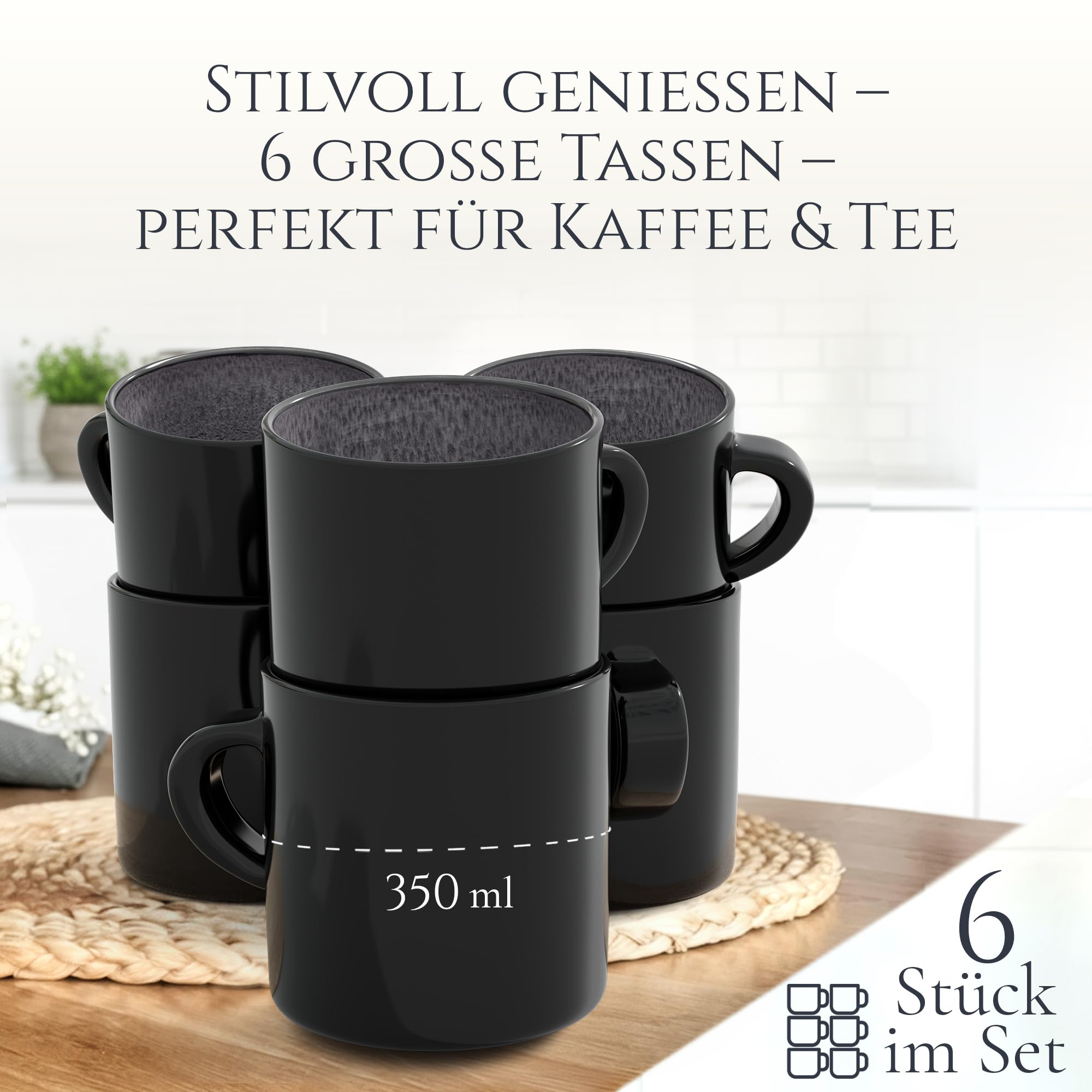 Steingut kleine Kaffeetassen 6 Pers. Ibiza Hochwertiges Mediterranes TEST SEHR GUT Tassen Set, Spülmaschinen-, Mikrowellen- und Kratzfest - Stylisches Tee- und Kaffeebecher Set - Pure Living in Grau
