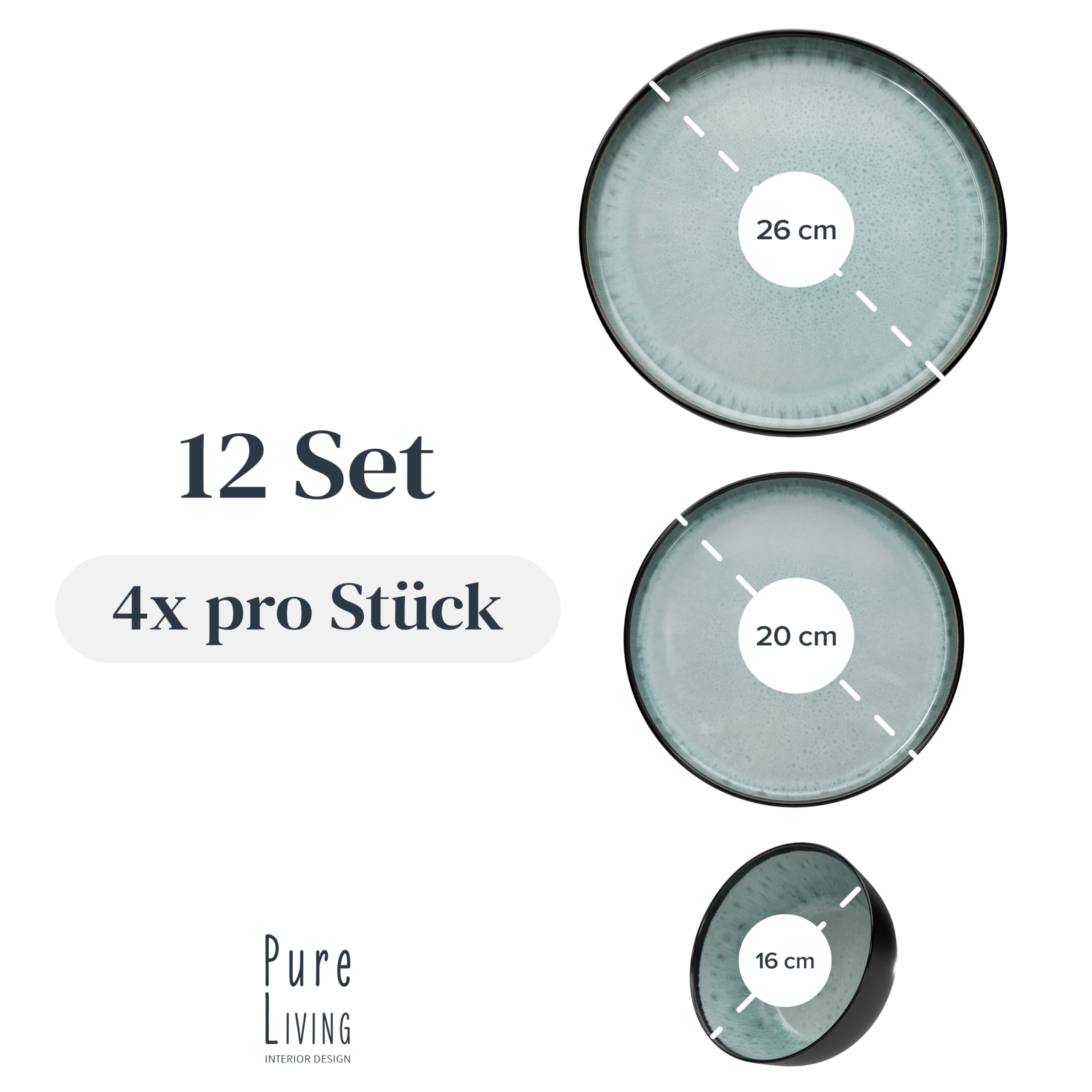 Steingut Geschirrset 4 Personen Ibiza 12 tlg. TESTSIEGER, Traumhaftes Mediterranes Steingut Geschirr Set, Schüssel- und Teller Set, Tafelservice 4 Personen, Geschirrsets Pure Living in Salbeigrün