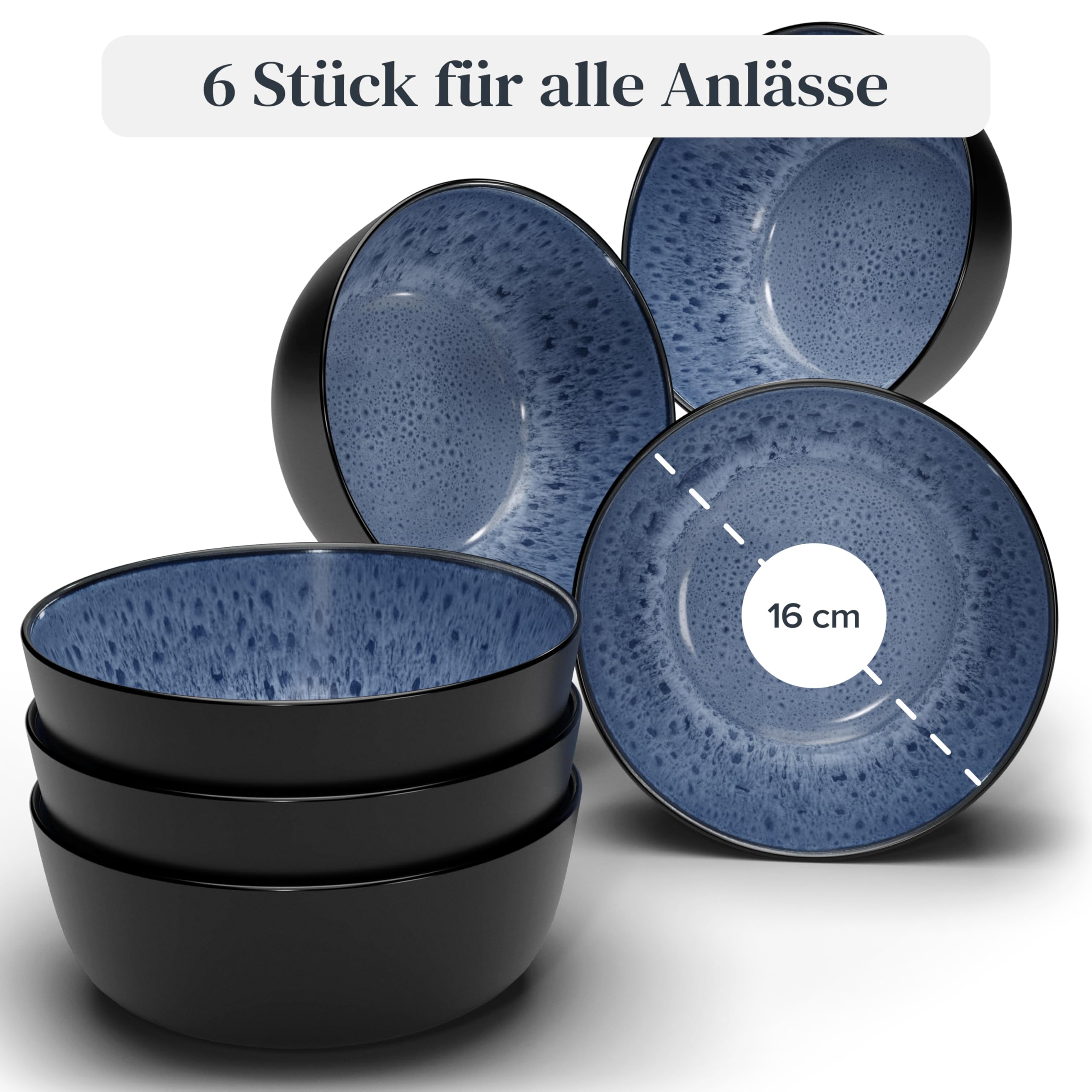 Steingut Müslischalen 6 Personen Ibiza TESTSIEGER, Traumhaftes Mediterranes Steingut Müsli Schüssel Set, Kleine Schüssel, Müslischale - Pure Living in Tiefblau