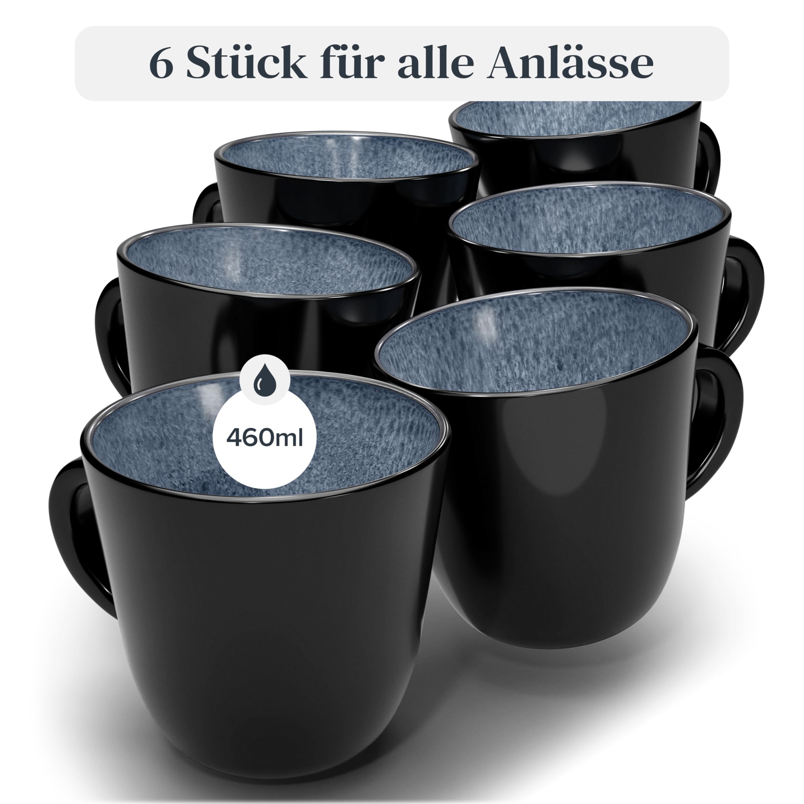 Steingut Kaffeetassen 6 Personen Ibiza TESTSIEGER, Traumhaftes Mediterranes Steingut Tassen Set, Stylisches Tee- und Kaffeebecher Set, Pure Living in Rauchblau