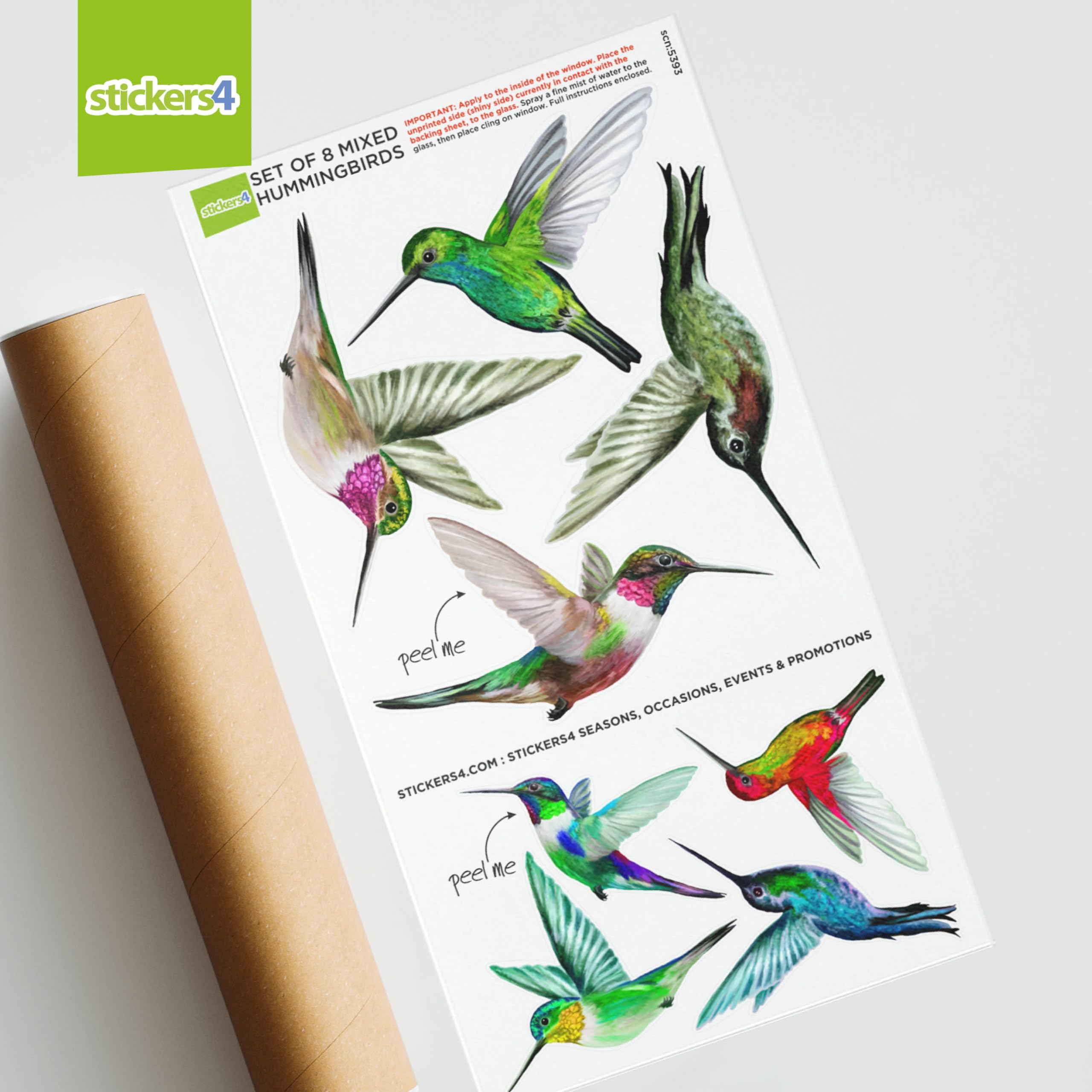 Statische Haftung bedeutet keinen Klebstoff, nur ein feiner Sprühnebel Wasser zum Auftragen, was bedeutet, dass Ihre Fenster nicht dauerhaft beschädigt werden. Ihre Kolibri-Aufkleber können leicht bewegt und mehrfach wiederverwendet werden.