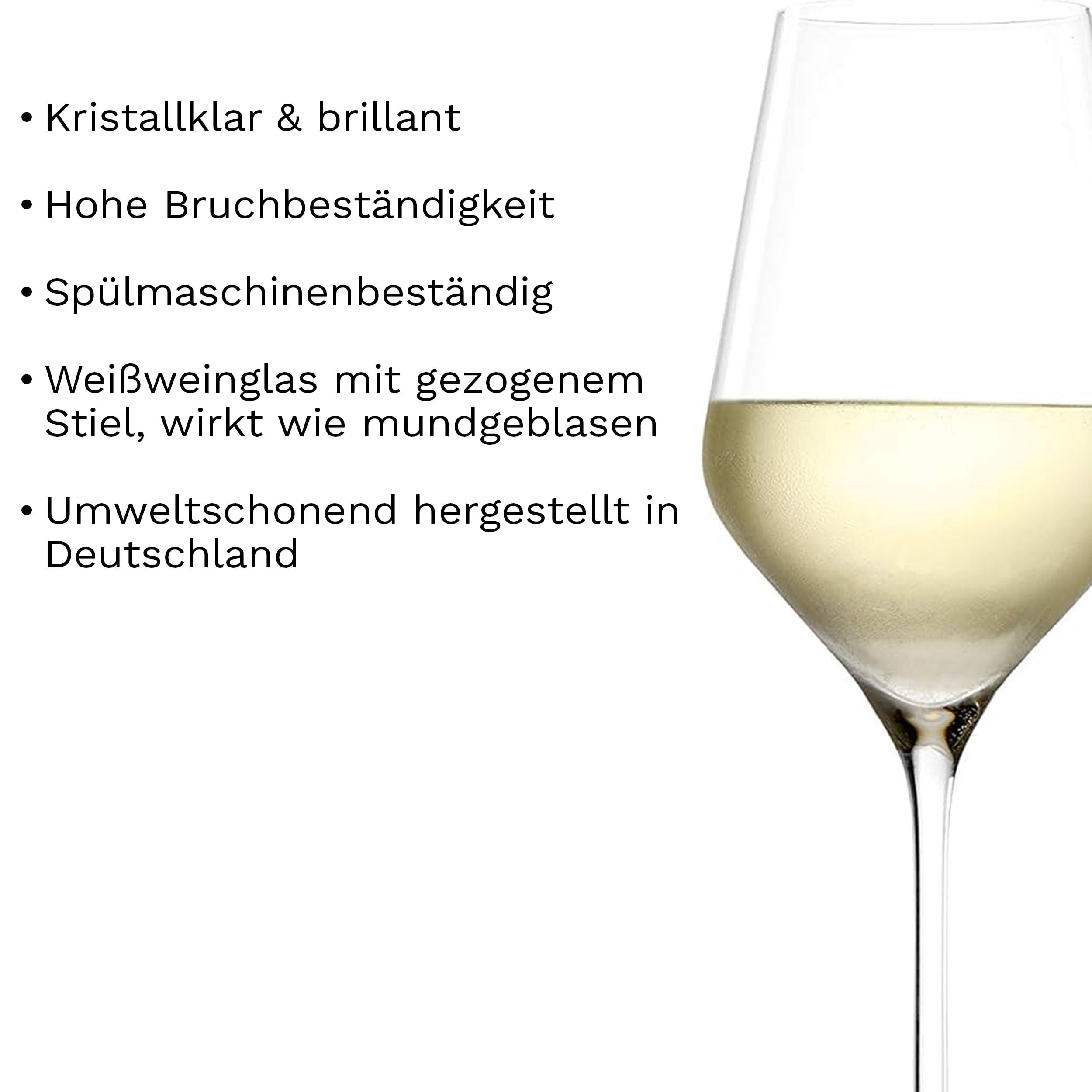 Stölzle Lausitz Weissweingläser Quatrophil 6er-Set 405 ml – Hochwertige Weingläser ideal für Weisswein & Aperitif – Eleganter Weissweinkelch aus Kristallglas – spülmaschinenfest & Made in Germany