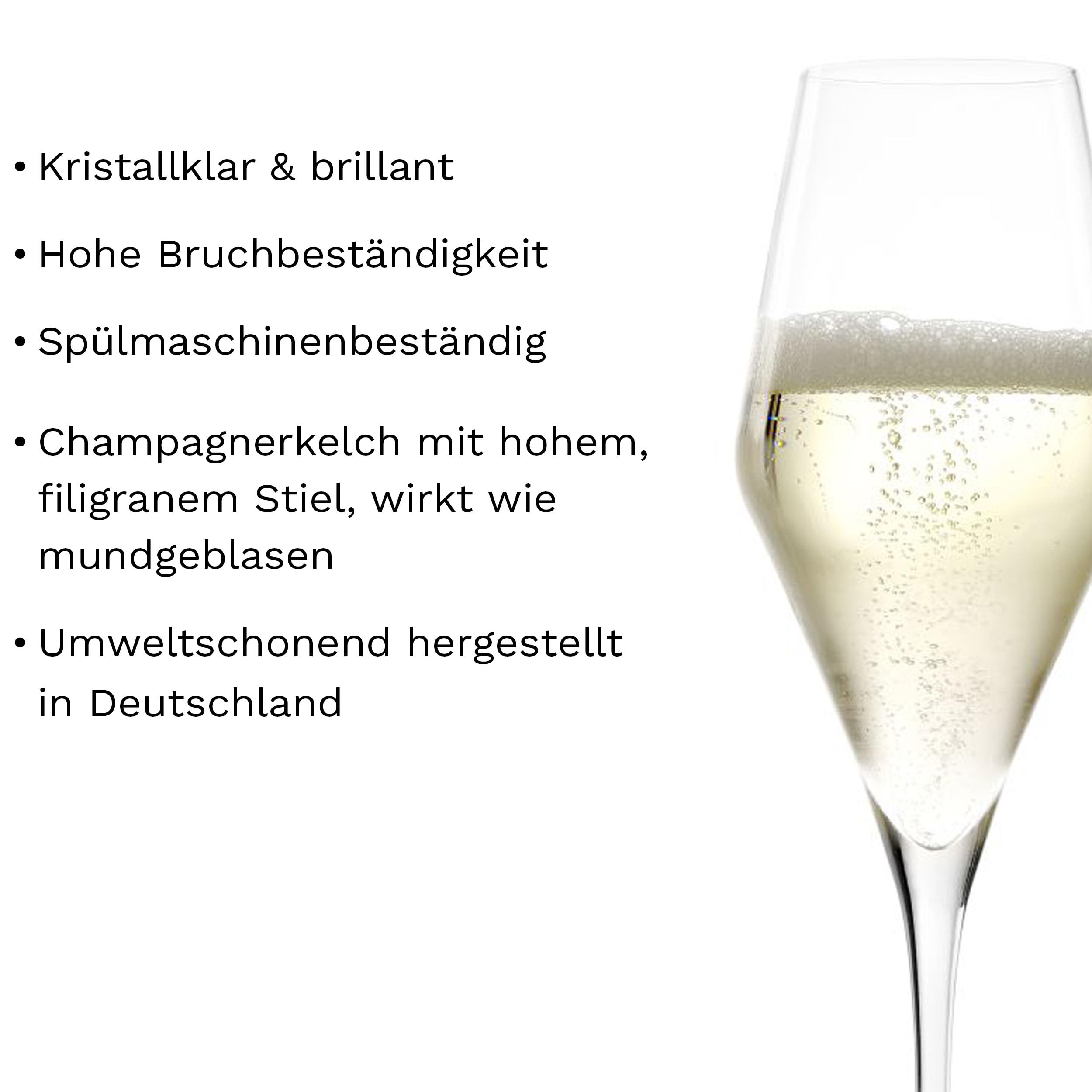 Stölzle Lausitz Champagner Gläser Quatrophil 6er-Set 290ml – Eleganter Champagnerkelch ideal für Sekt & Prosecco – Hochwertige Kristall Sektgläser aus deutscher Herstellung – Spülmaschinen- & Stossfest