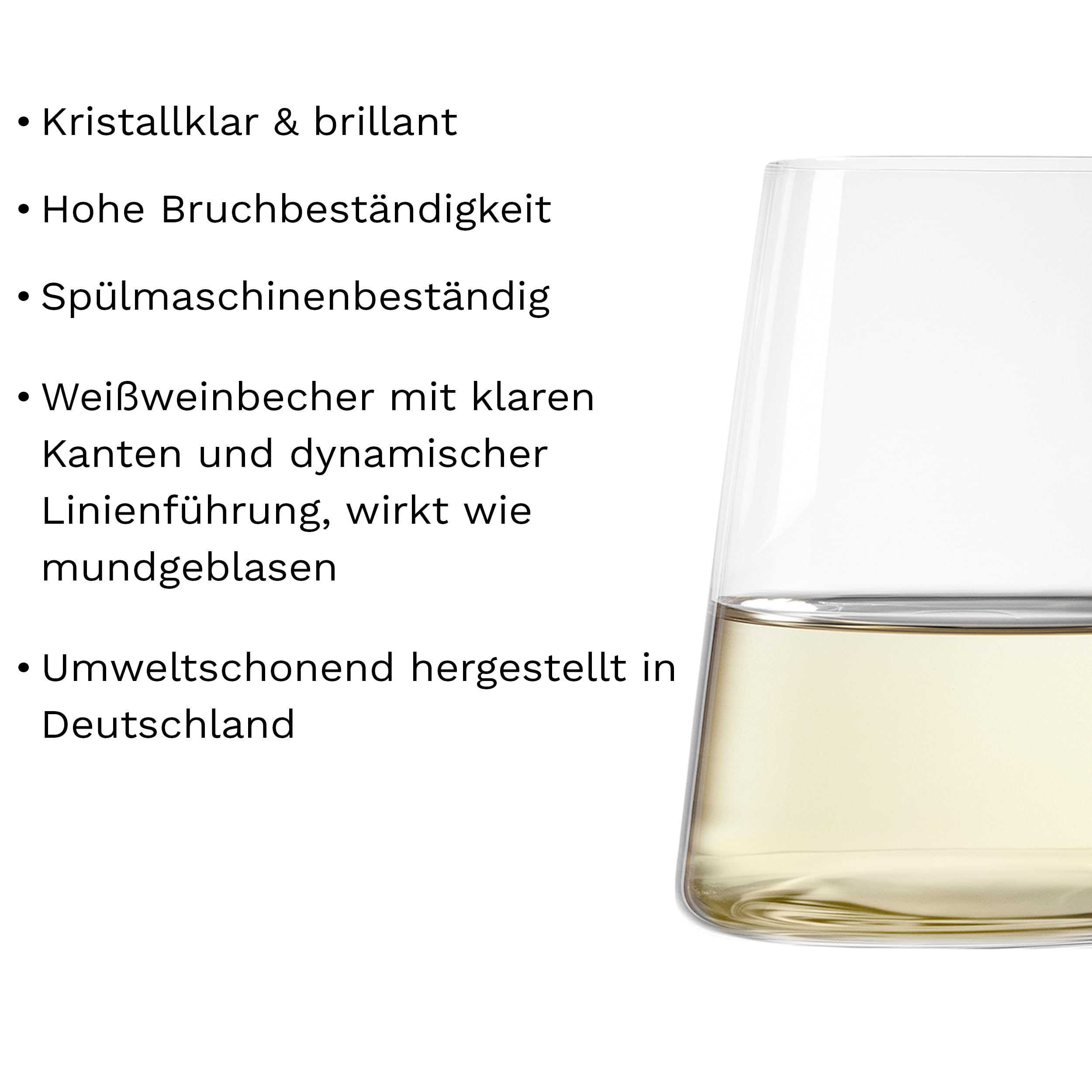 Stölzle Lausitz Weissweinbecher Power 6er-Set 380 ml – Moderne Weingläser ohne Stiel für maximale Aromaentfaltung – Flache Weissweingläser aus Kristallglas – Spülmaschinen- & Stossfest, Made in Germany