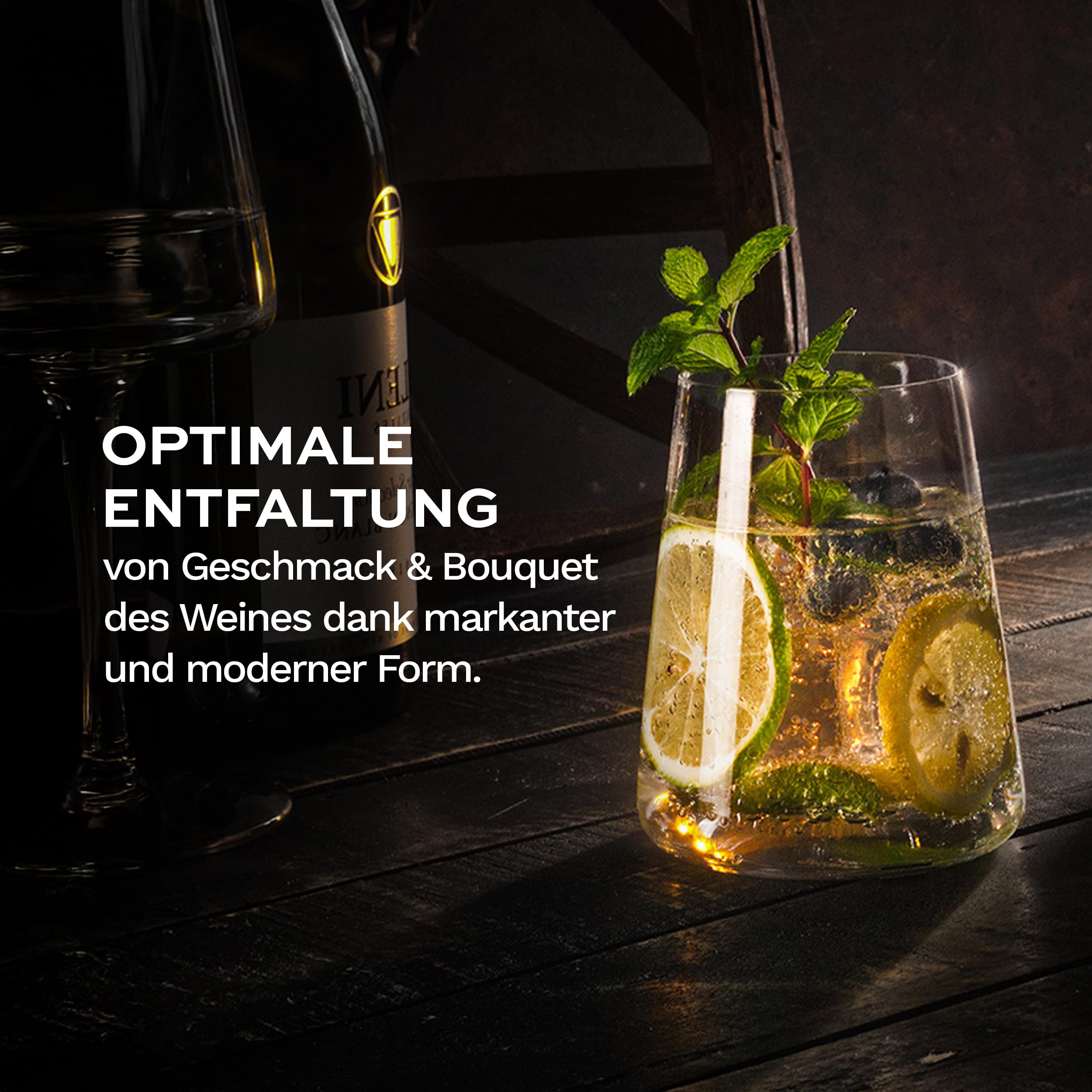 Die Serie POWER zeichnet sich durch ausdrucksstarke und reine Formen aus, die die Quensta einzigartig in seiner Art machen. Das Getränk ist mit breiten und flachen Wänden ausgestattet, so dass Sie einen Kamin herstellen, der alle Aromen des Trauben direkt in die Sinne des Geschmacks bringt. Das besondere an der Form des Weingläsers, ermöglicht die maximale Sauerstoffversorgung auch bei kleinen Mengen von Flüssigkeit, wodurch dieses Produkt für alle Weinliebhaber geeignet ist.