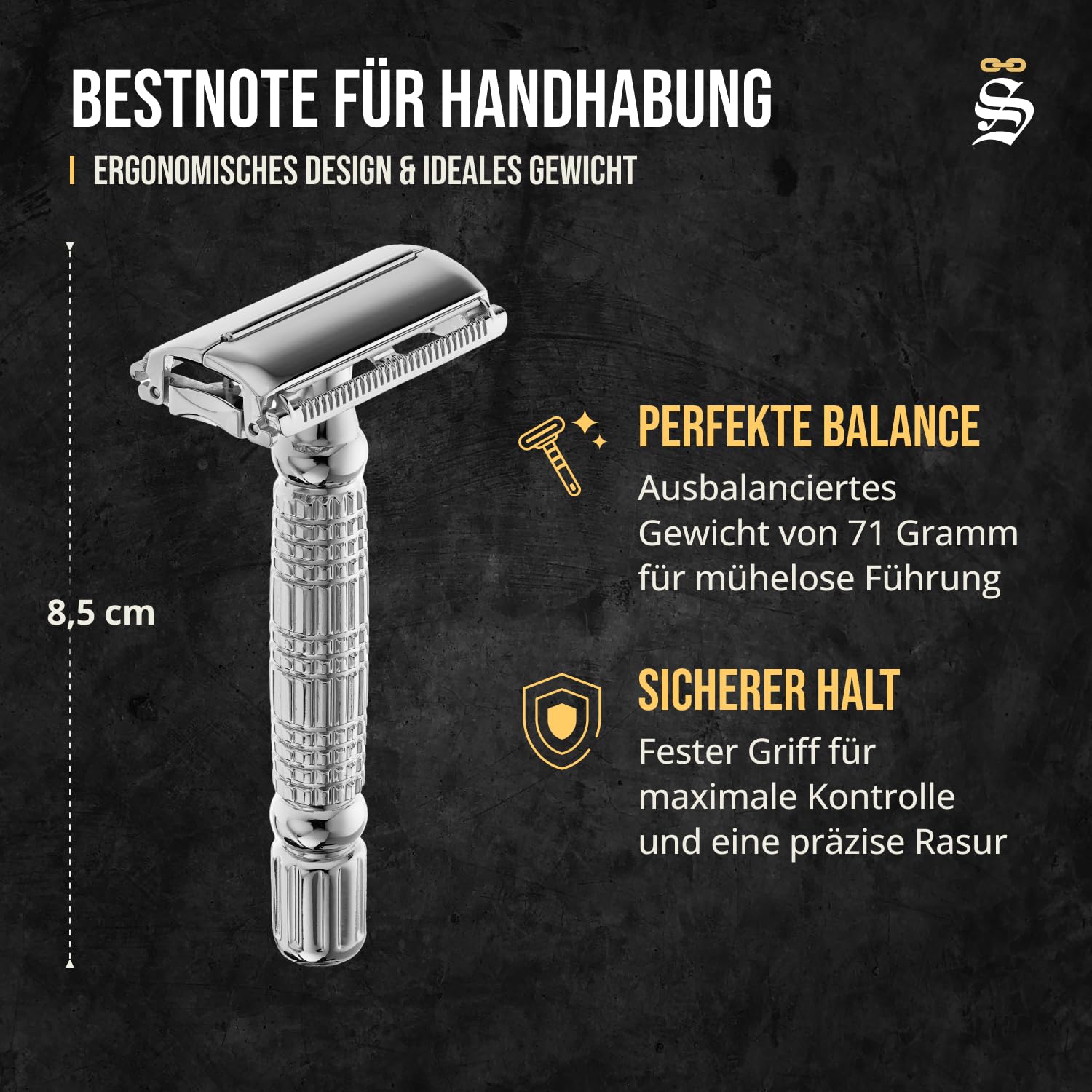 Störtebekker® Premium Rasierhobel Herren Hamburg - Rasierset mit 10 Rasierklingen & Leder-Etui - Nassrasierer Herren inkl. Reise-Etui mit Spiegel - *TESTSIEGER* Stiftung Warentest (12/2024)