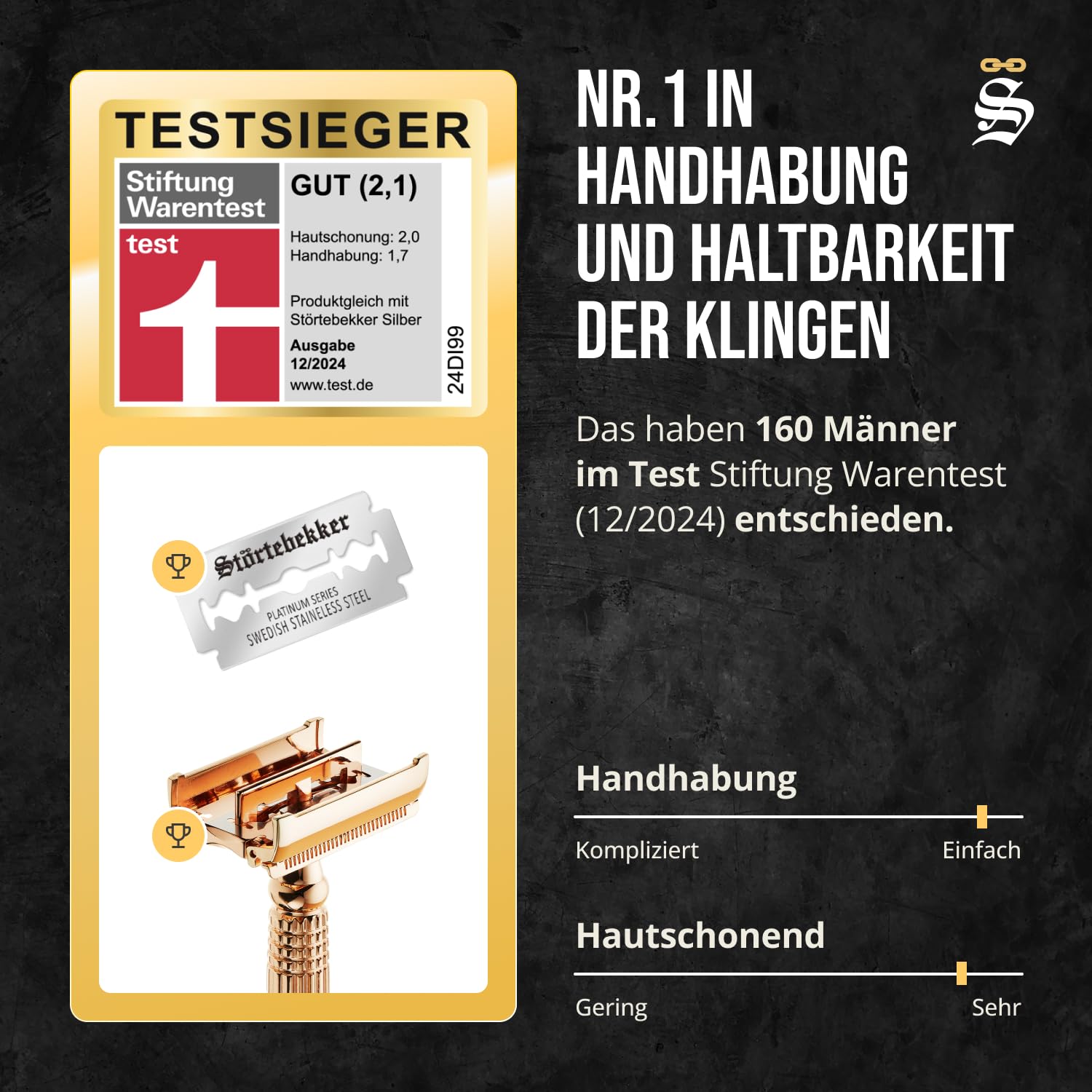 Störtebekker® Premium Rasierhobel Herren Hamburg - Rasierset mit 10 Rasierklingen & Leder-Etui - Nassrasierer Herren inkl. Reise-Etui mit Spiegel - *TESTSIEGER* Stiftung Warentest (12/2024)