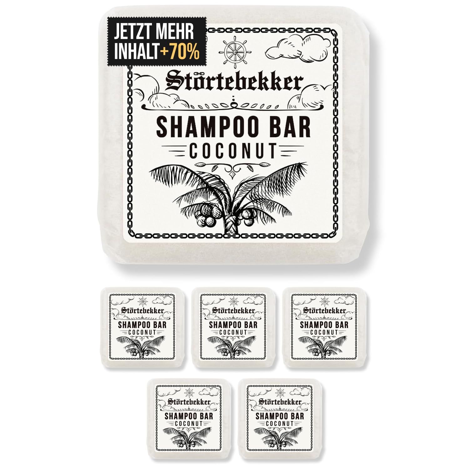 Störtebekker® Premium Shampoo Bar Kokos (6x) - Festes Shampoo Herren & Damen - 3in1 Duschseife Männer für Haare, Kopfhaut & Bart - Feuchtigkeitsshampoo - vegan, handgefertigt - 6x100g