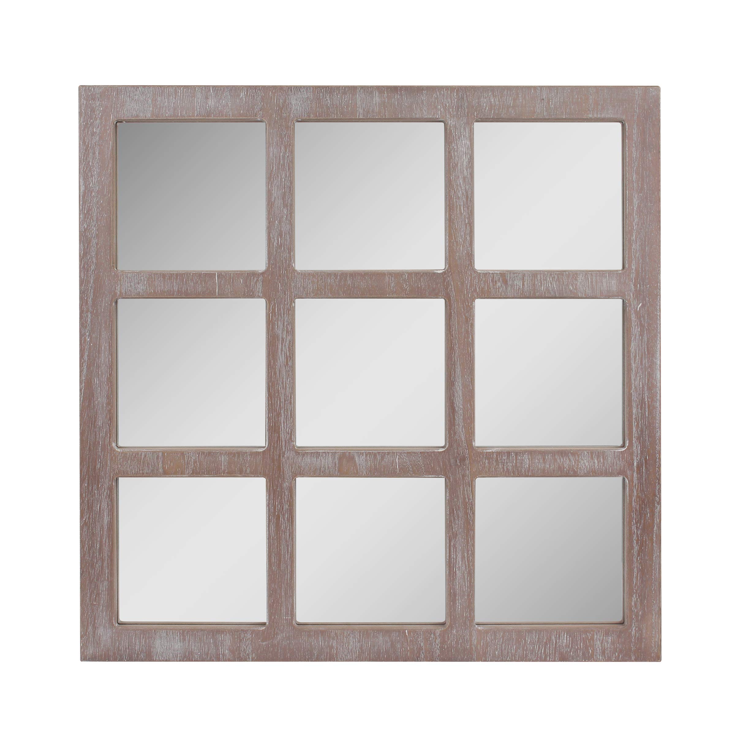 Stonebriar 23.5" x 23.5" Square Rustic 9 Panel Window Pane Hanging Wall Mirror with Attached Mounting Brackets