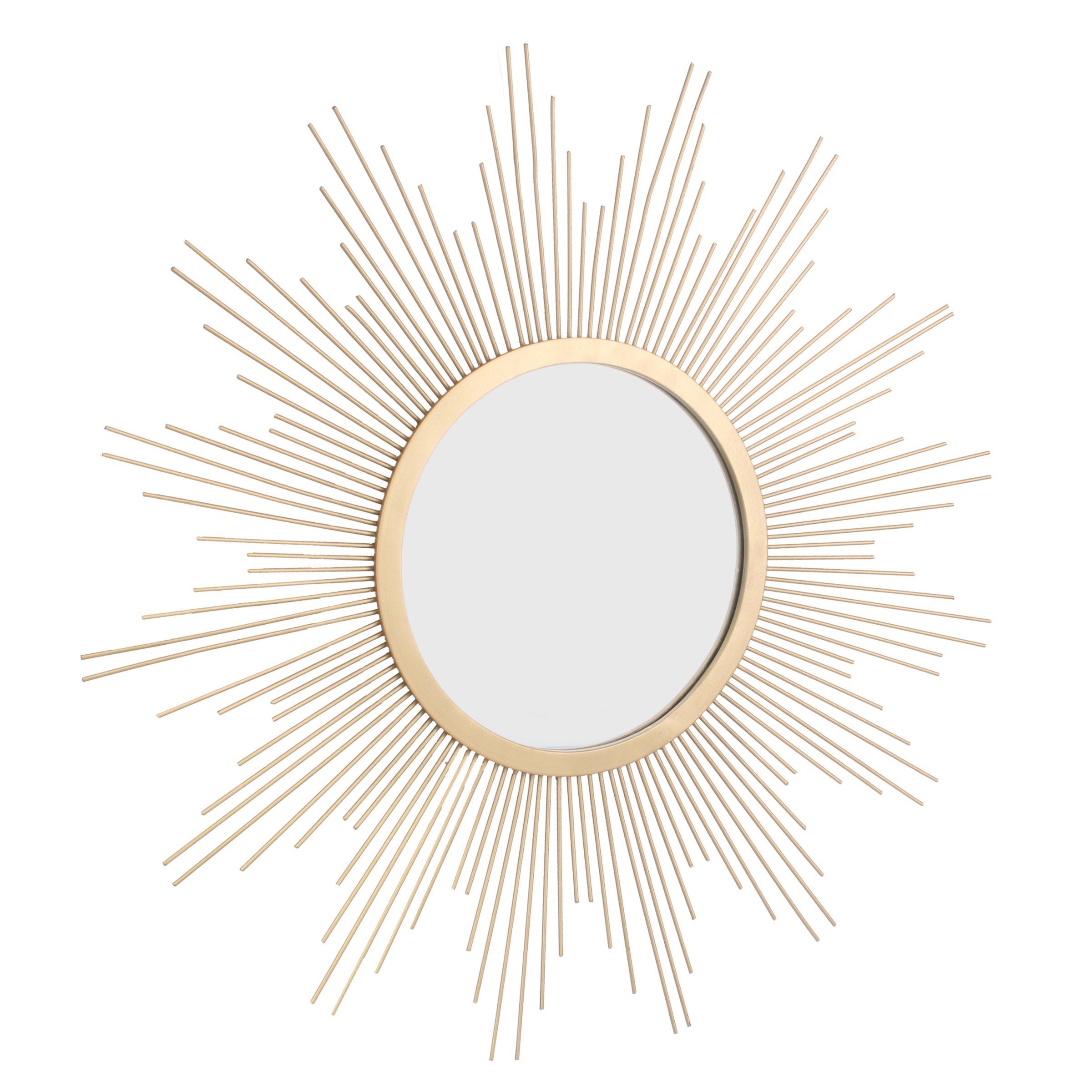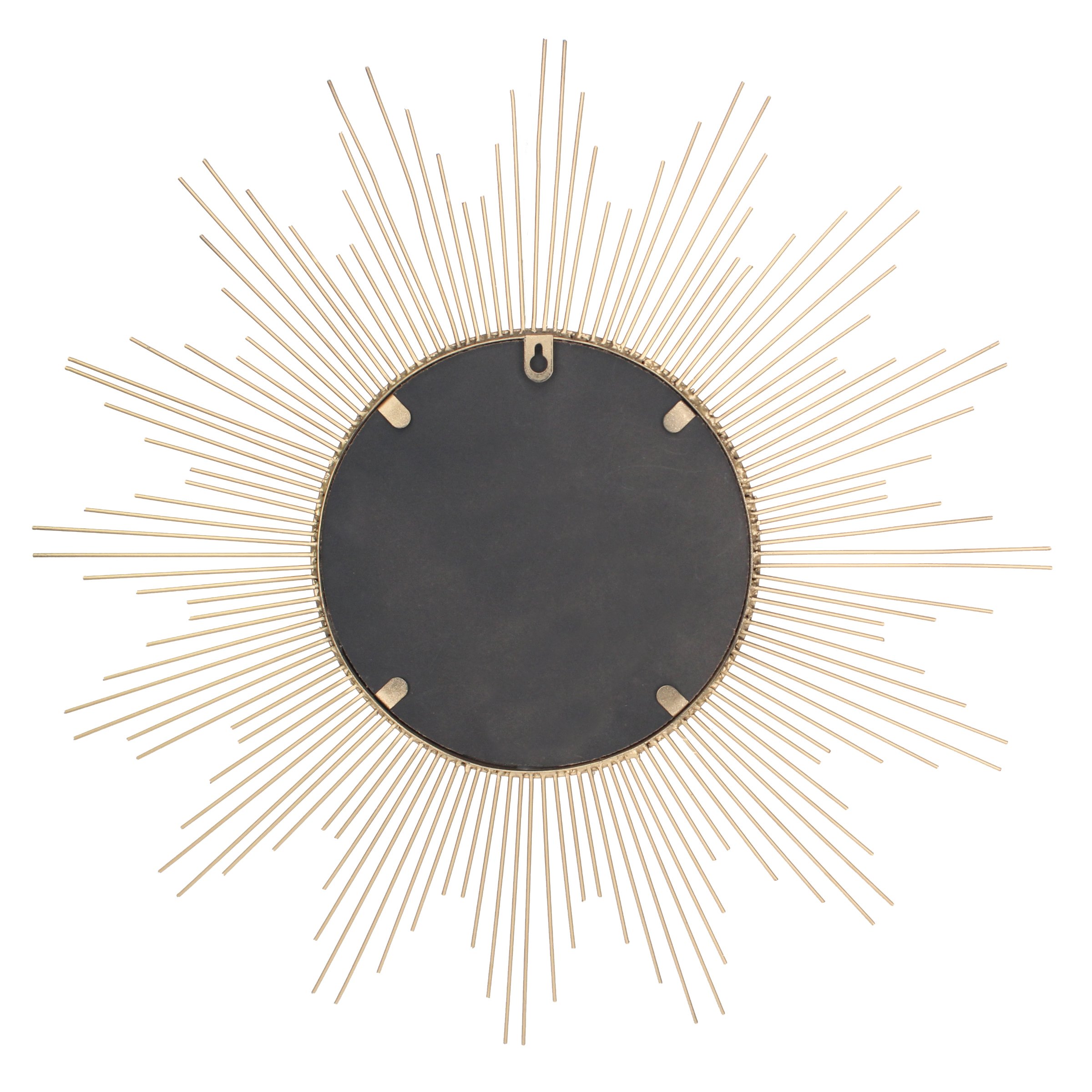 Instantly add an interesting focal point to any room in your home with Stonebriar's Gold Starburst Wall Mirror. This unique mirror features a stylish metal wire sunburst design accented with an antique gold finish giving a little extra pop to your home decor. The end result is a striking and eye-catching piece perfect for your living room, dining room, bedroom, bathroom, or any room in your home. Stonebriar's decorative mirror measures 24 inches in diameter with the frame and the mirror measures 8.75 inches in diameter alone. It is the perfect size to use as an accent mirror on any wall in your home. Mirror comes with attached keyhole hanging bracket for easy installation right out of the box! Buy your Stonebriar Gold Starburst Mirror today and create an instant classic in your home decor.