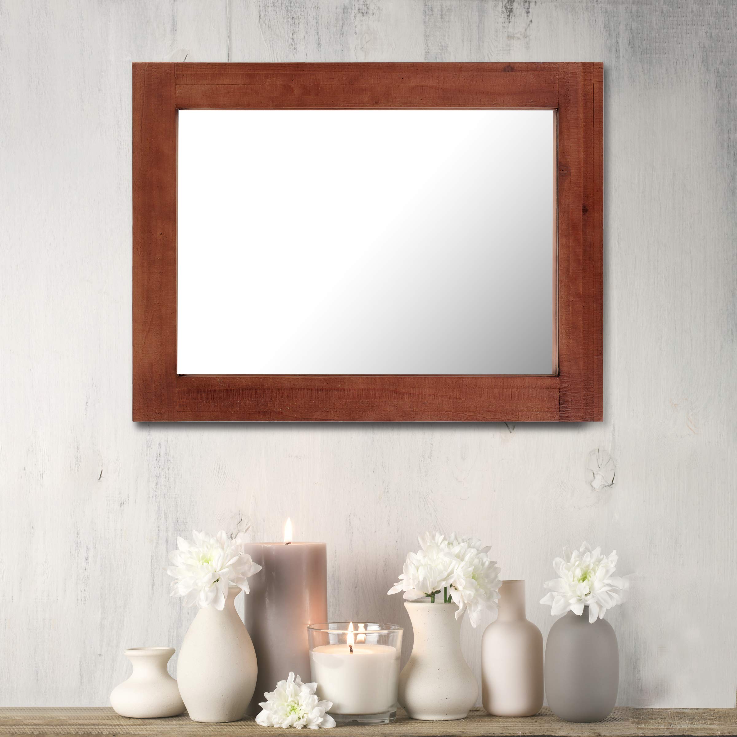 Instantly add an interesting focal point to any room in your home with Stonebriar's rustic rectangular redwood wooden frame hanging wall mirror for vertical or horizontal display. This unique mirror features a rustic redwood stained wooden frame accented with a lightly distressed finish giving a vintage feel to your home decor. The end result is a striking and eye-catching piece perfect for your living room, dining room, bedroom, bathroom, or any room in your home. Stonebriar's decorative mirror measures 24 inches by 18 inches and is the perfect size to use as a bathroom vanity mirror or as an accent mirror on any wall in your home. Mirror comes with 2 attached sawtooth mounting bracket for easy installation right out of the box! Buy your Stonebriar rustic rectangular redwood wooden frame hanging wall mirror for vertical or horizontal display today and create an instant classic in your home decor.