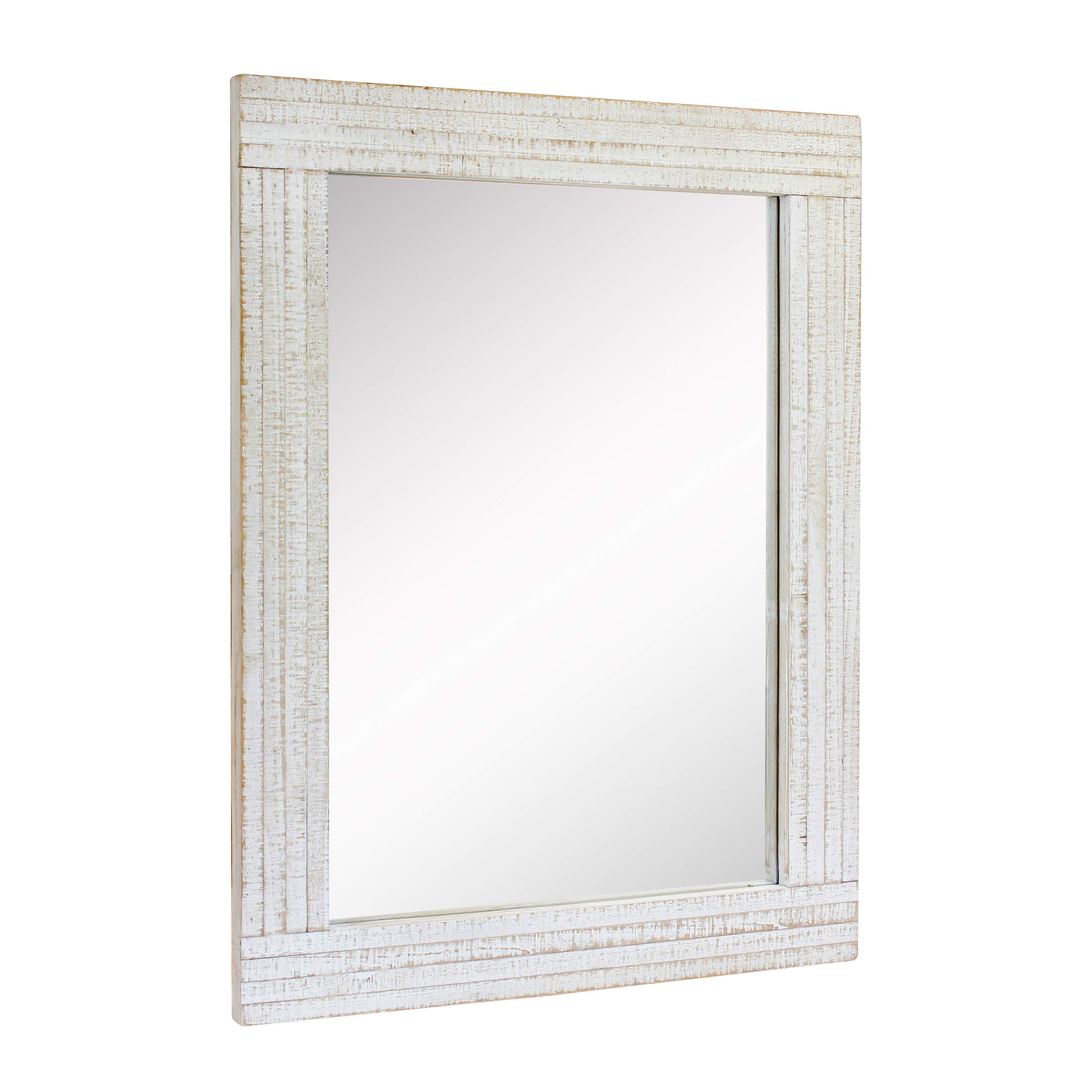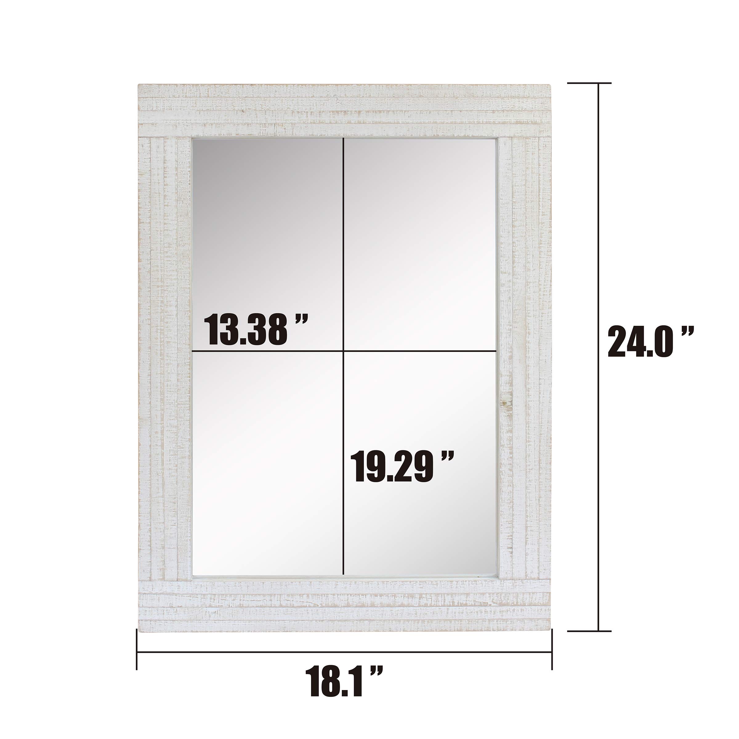 Instantly add an interesting focal point to any room in your home with Stonebriar's rustic rectangular worn white wood frame hanging wall mirror for vertical or horizontal display. This unique mirror features a rustic worn white painted wood frame accented with a lightly distressed finish giving a vintage feel to your home decor. The end result is a striking and eye-catching piece perfect for your living room, dining room, bedroom, bathroom, or any room in your home. Stonebriar's decorative mirror measures 24 inches by 18 inches and is the perfect size to use as a bathroom vanity mirror or as an accent mirror on any wall in your home. Mirror comes with 2 attached sawtooth mounting bracket for easy installation right out of the box! Buy your Stonebriar rustic rectangular worn white wood frame hanging wall mirror for vertical or horizontal display today and create an instant classic in your home decor.